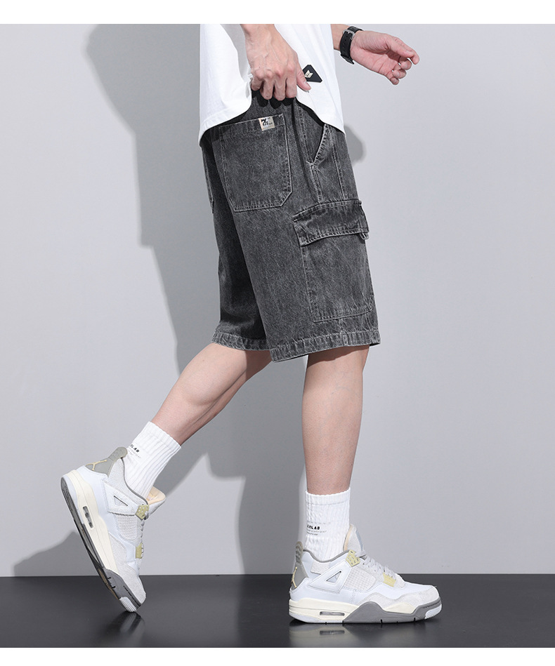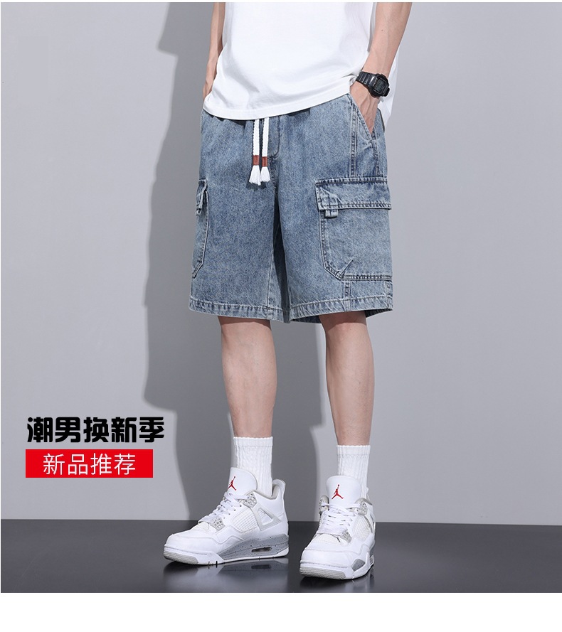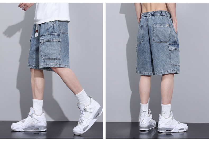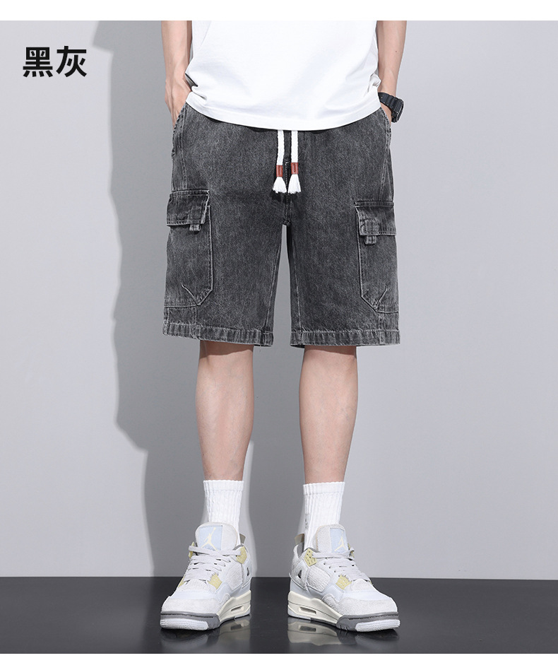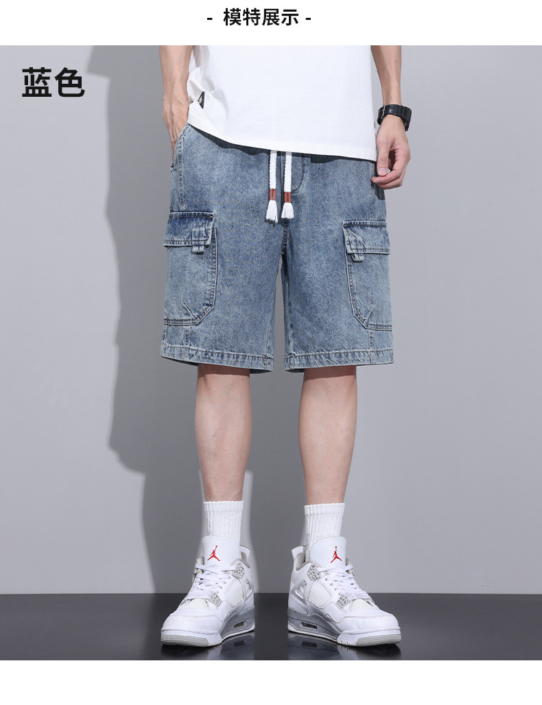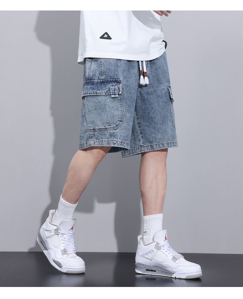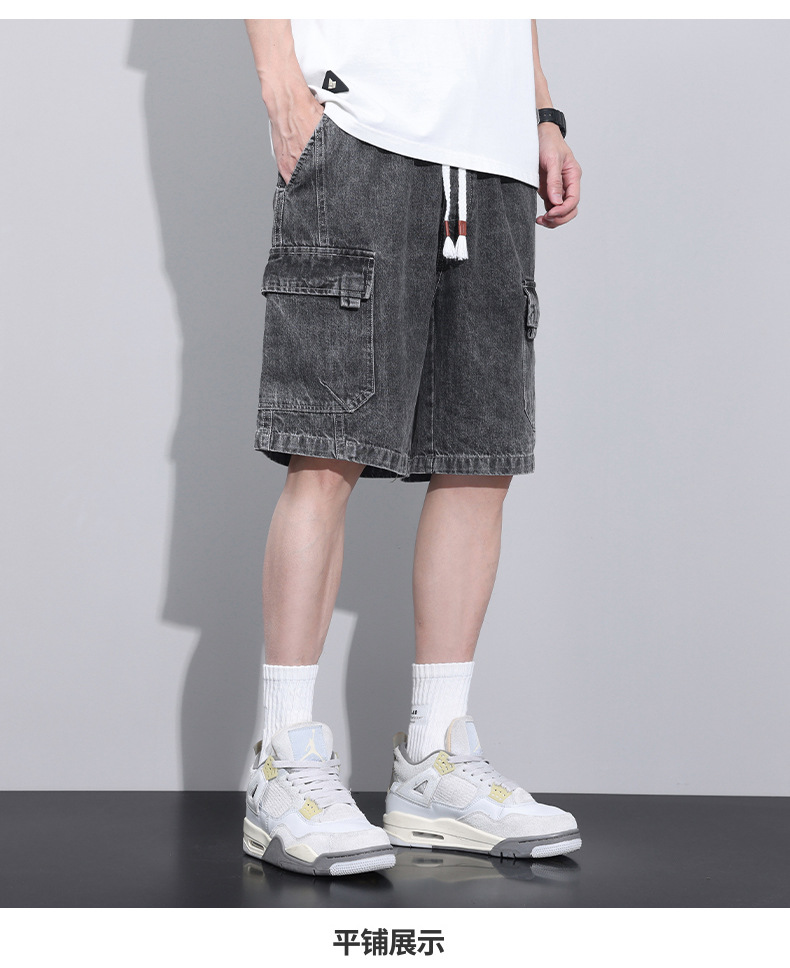 ワークウェアデニムショートパンツメンズ夏薄手ルーズストレート2025新作アメリカンファッションブランドカジュアルミッドパンツ