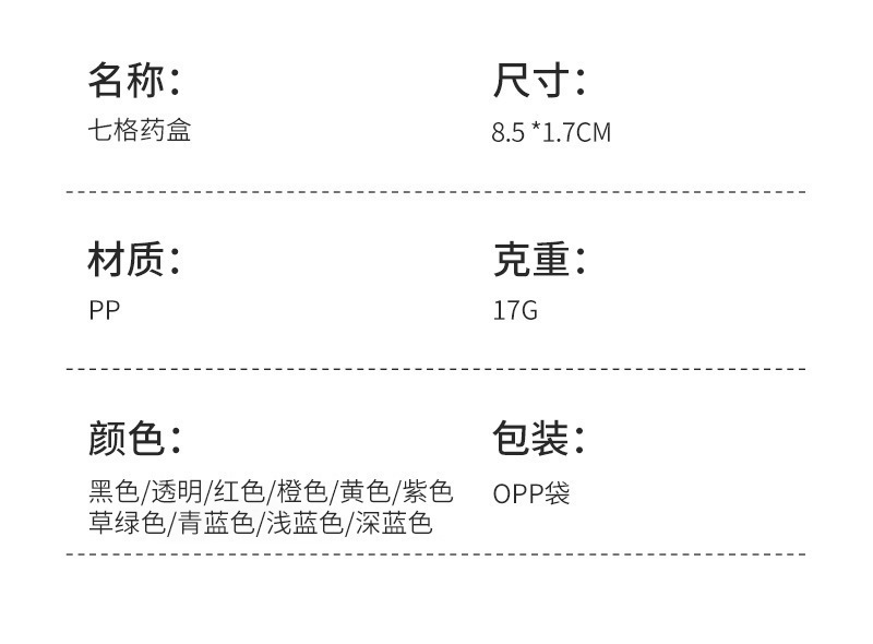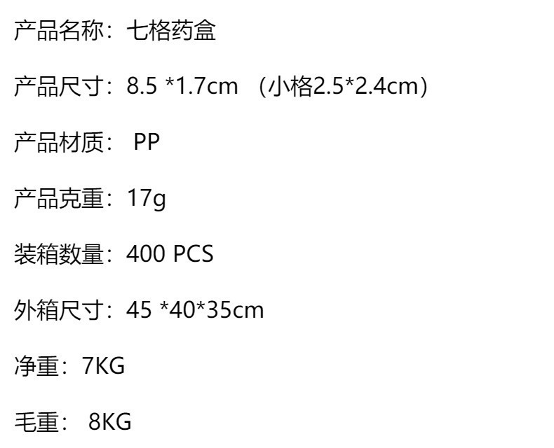 携帯7格収納薬箱点字付き週7日分装収納箱長条防湿防塵貯蔵薬箱