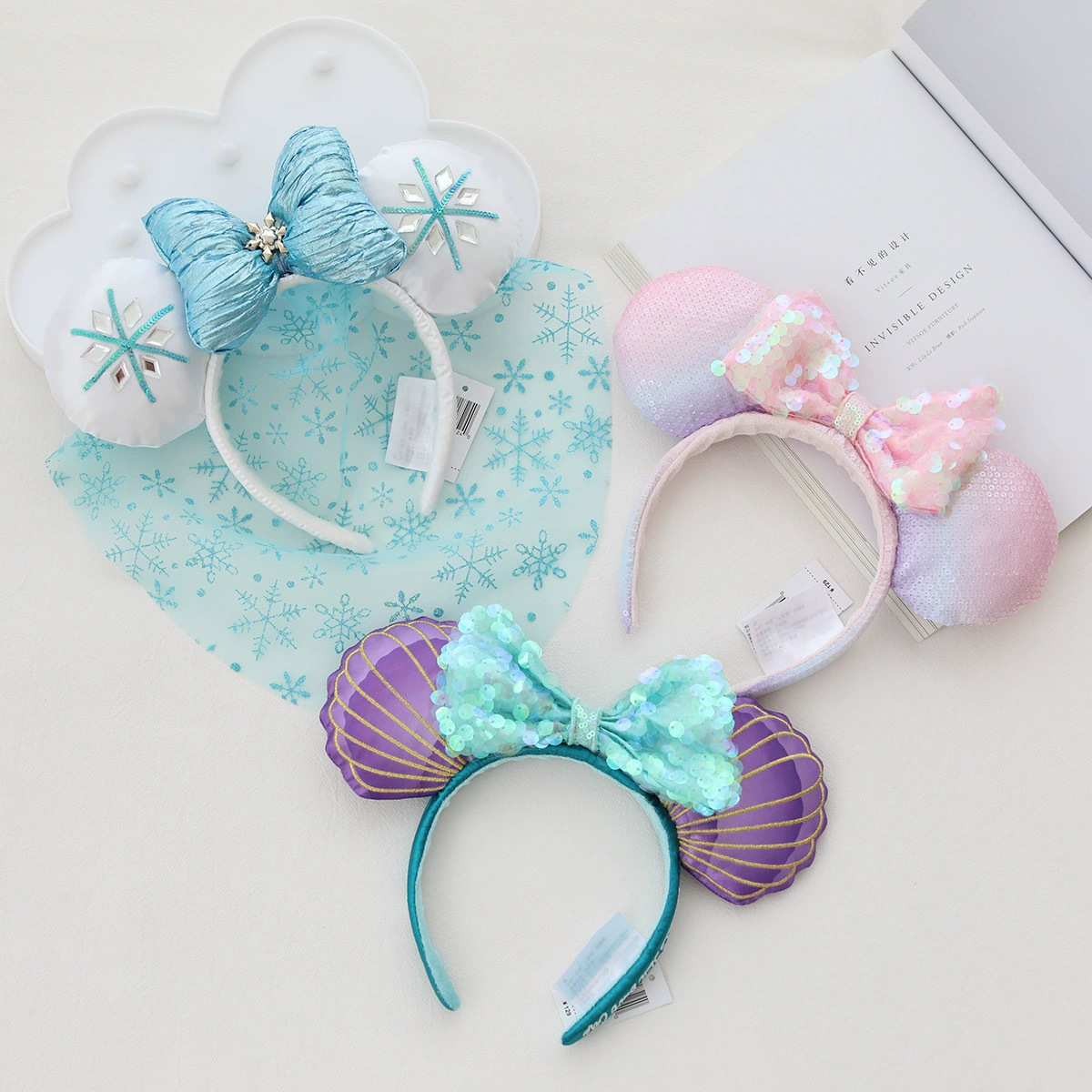 遊園地遊園地同スタイルローズリボンスパンコールマーメイド氷と雪の白いガーゼ水玉模様のヘアフープヘアアクセサリー