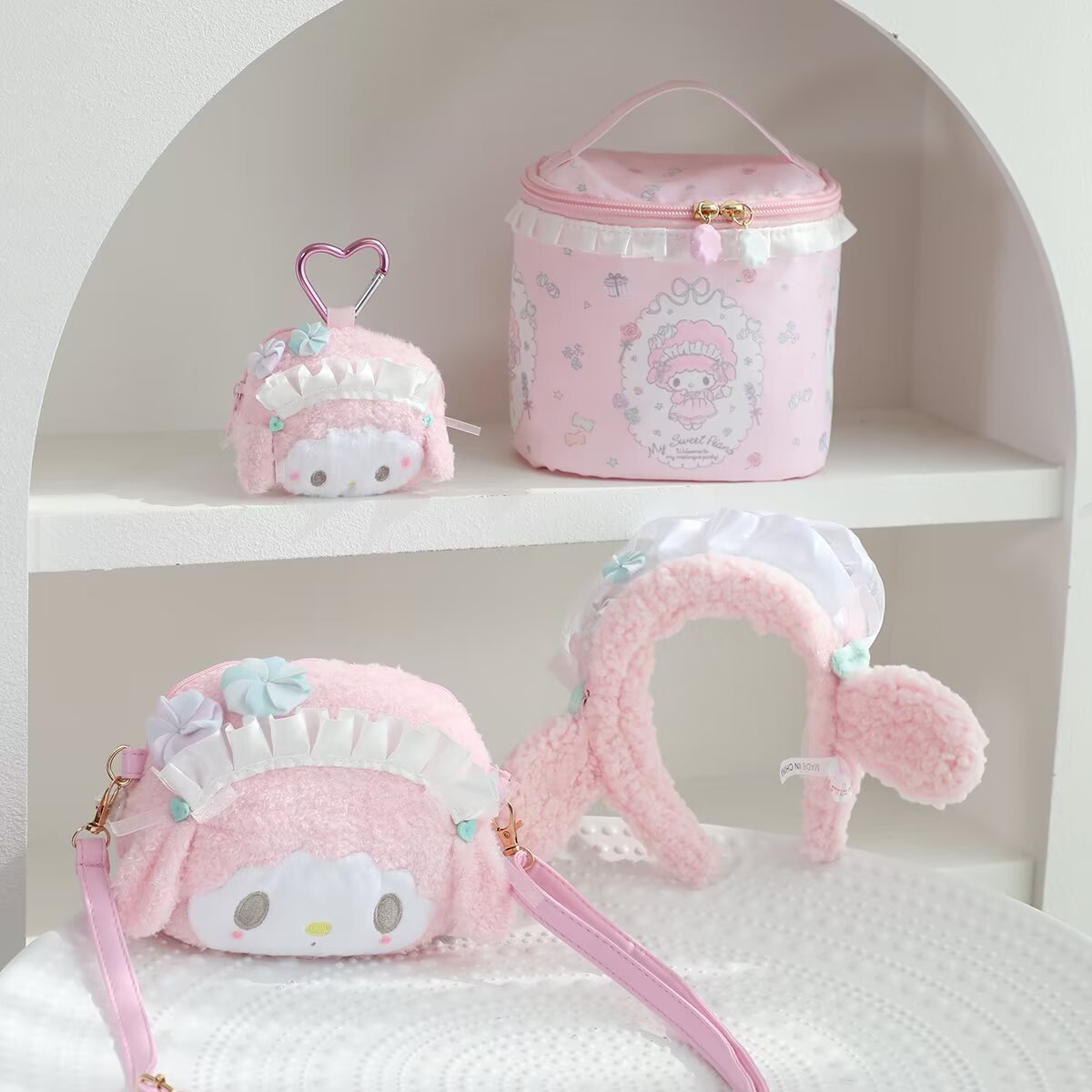 漫画メディ羊シリーズぬいぐるみ子供用メッセンジャーバッグかわいい化粧品バッグ化粧ケース小銭入れヘアフープ