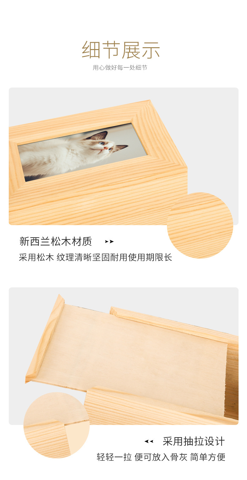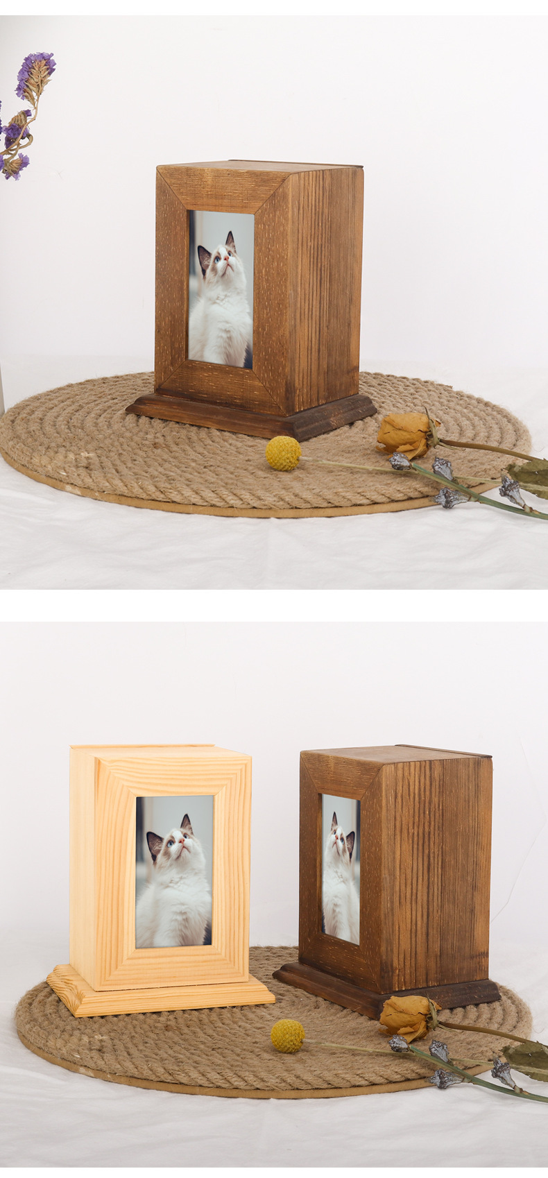 国境を越えた動物木箱無垢材ペット記念骨壺フォトフレーム付き犬猫ペット火葬ボックス卸売