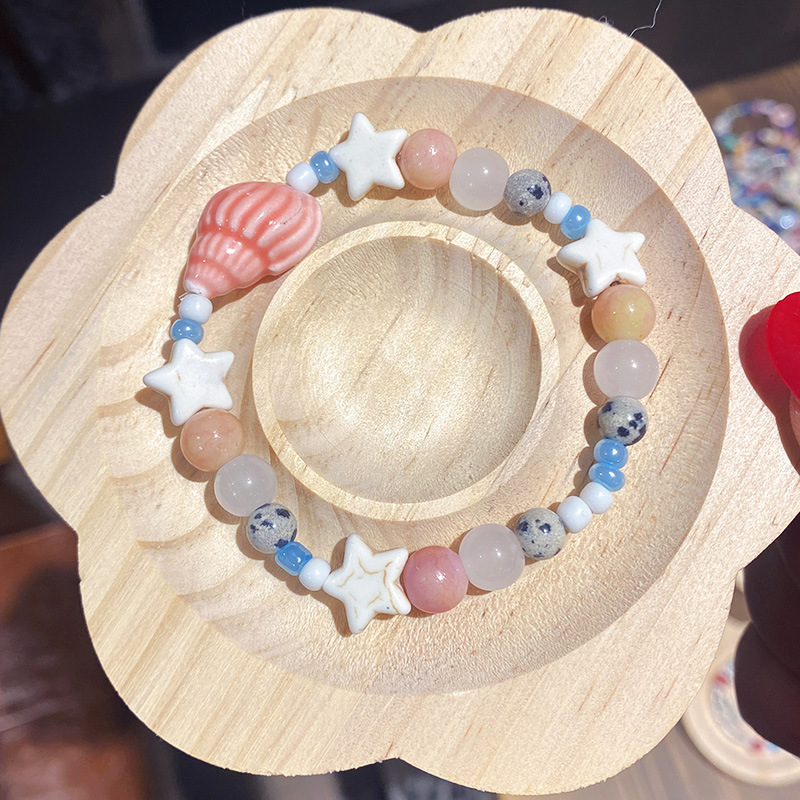 リゾート風海螺星陶磁器数珠ブレスレット女性軽豪華小衆精致手串高颜値学生党手飾り