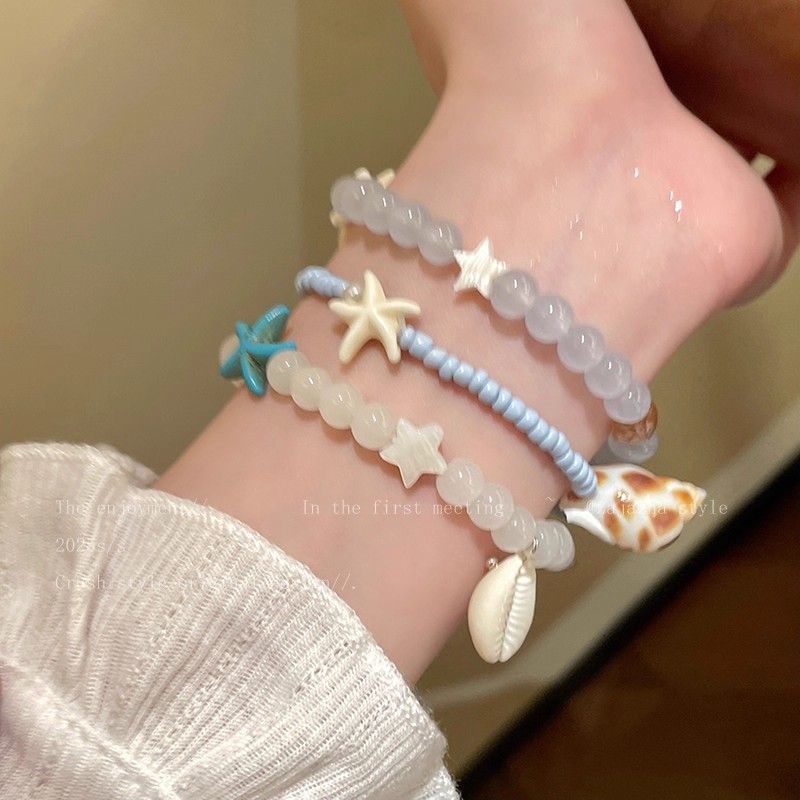 度假风海螺星星陶瓷串珠手链女轻奢小众精致手串高颜值学生党手饰