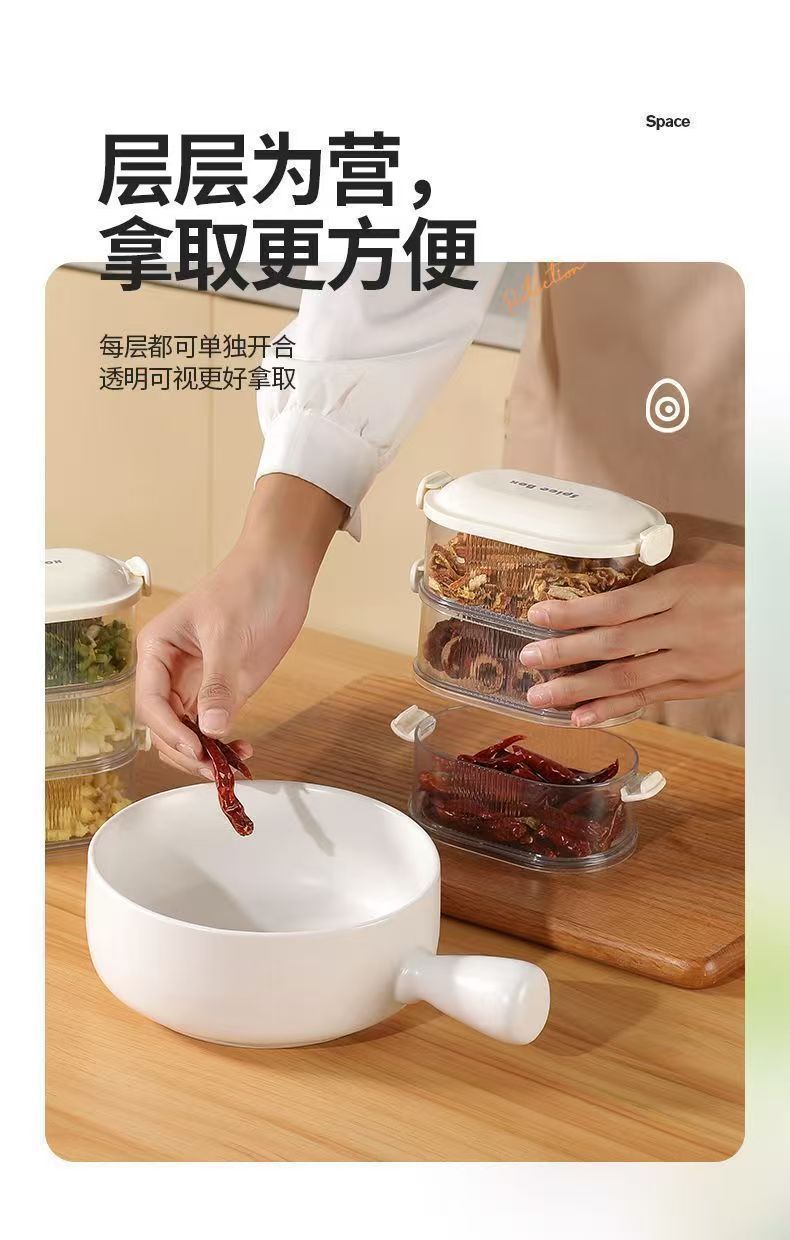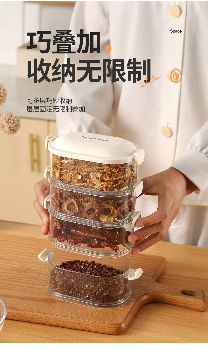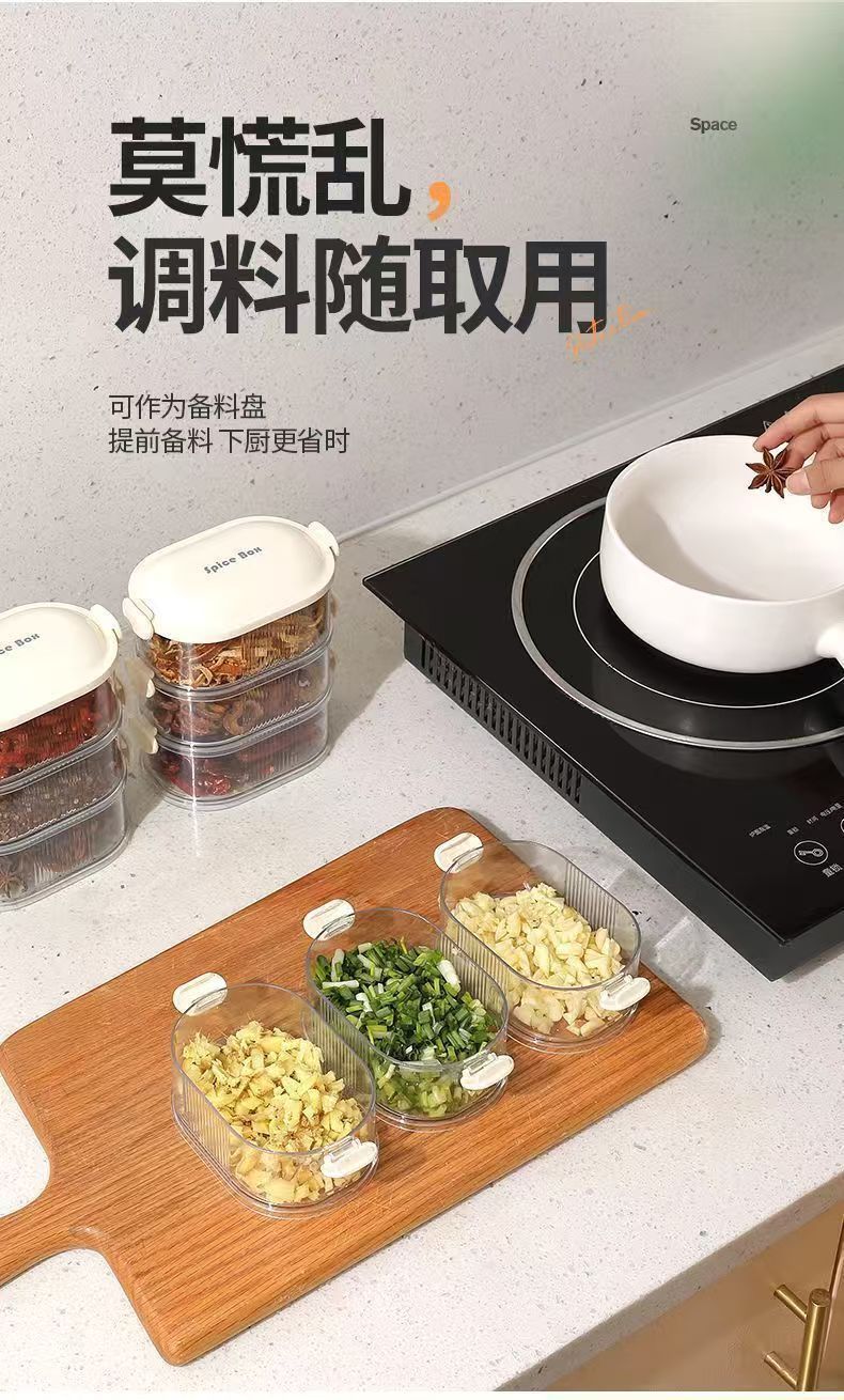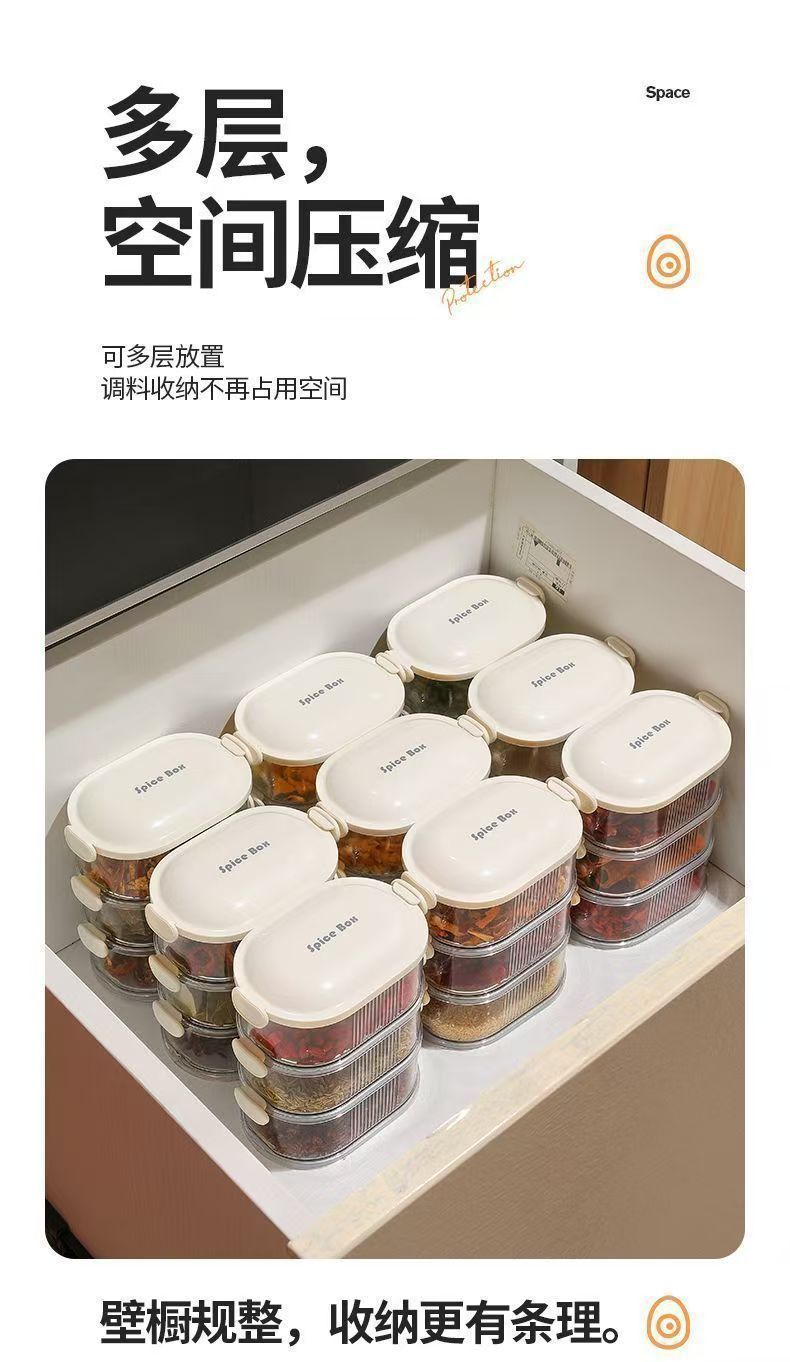 香辛料収納ボックス、仕切り付きボックス、蓋付き胡椒収納ボックス、調味料密封容器、密封多層調味料ボックス