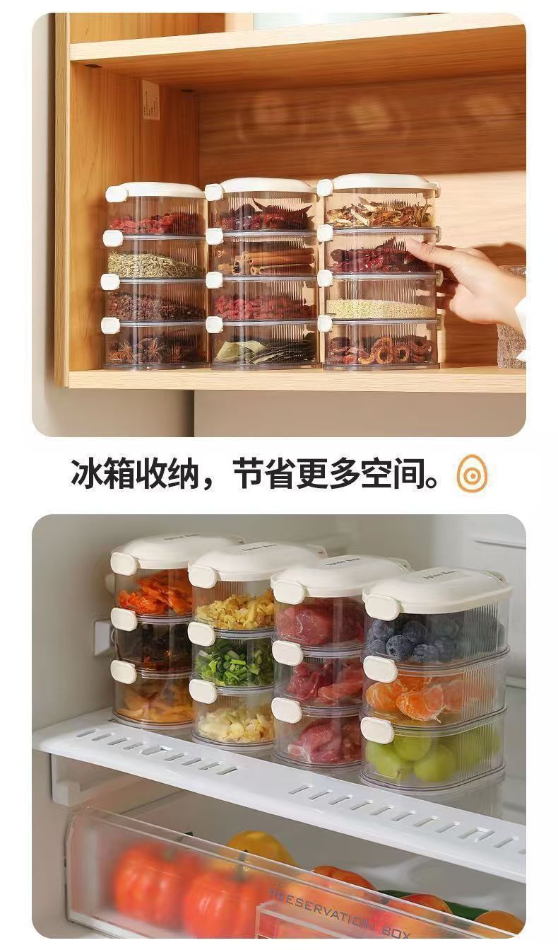 厨房香料收纳盒葱姜蒜保鲜盒可叠加食品密封盒食品级小料分装盒子