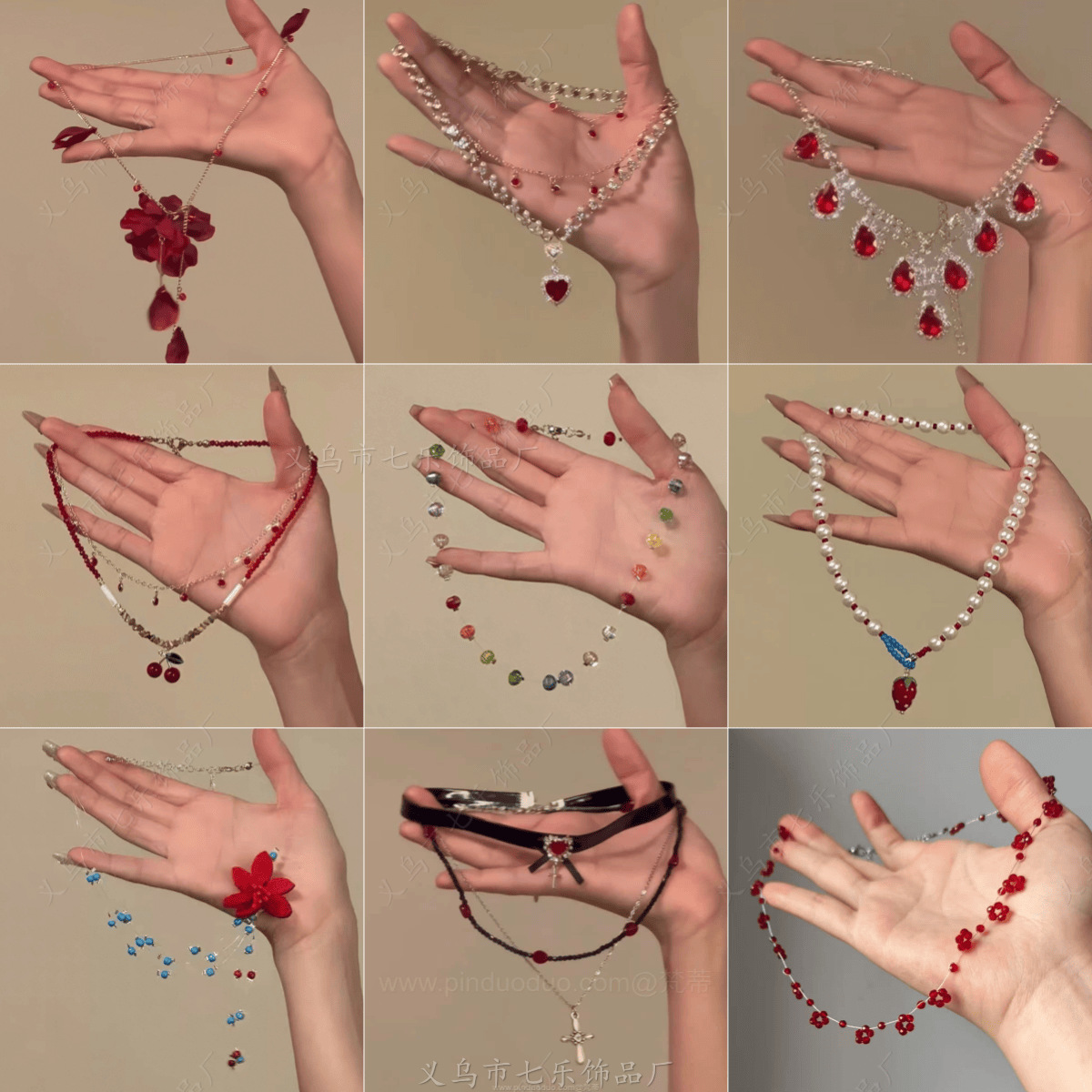 燃烧的玫瑰 氛围感原创新年酒红花朵复古水晶项链锁骨链新款颈链