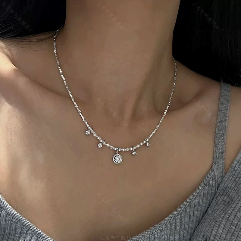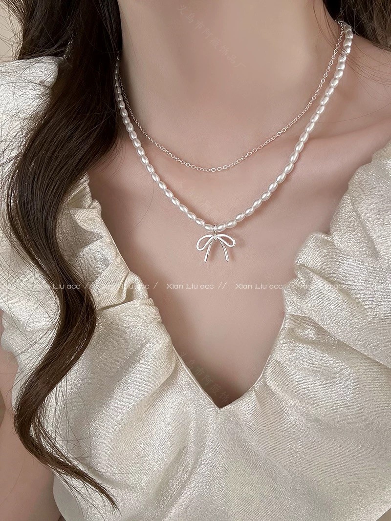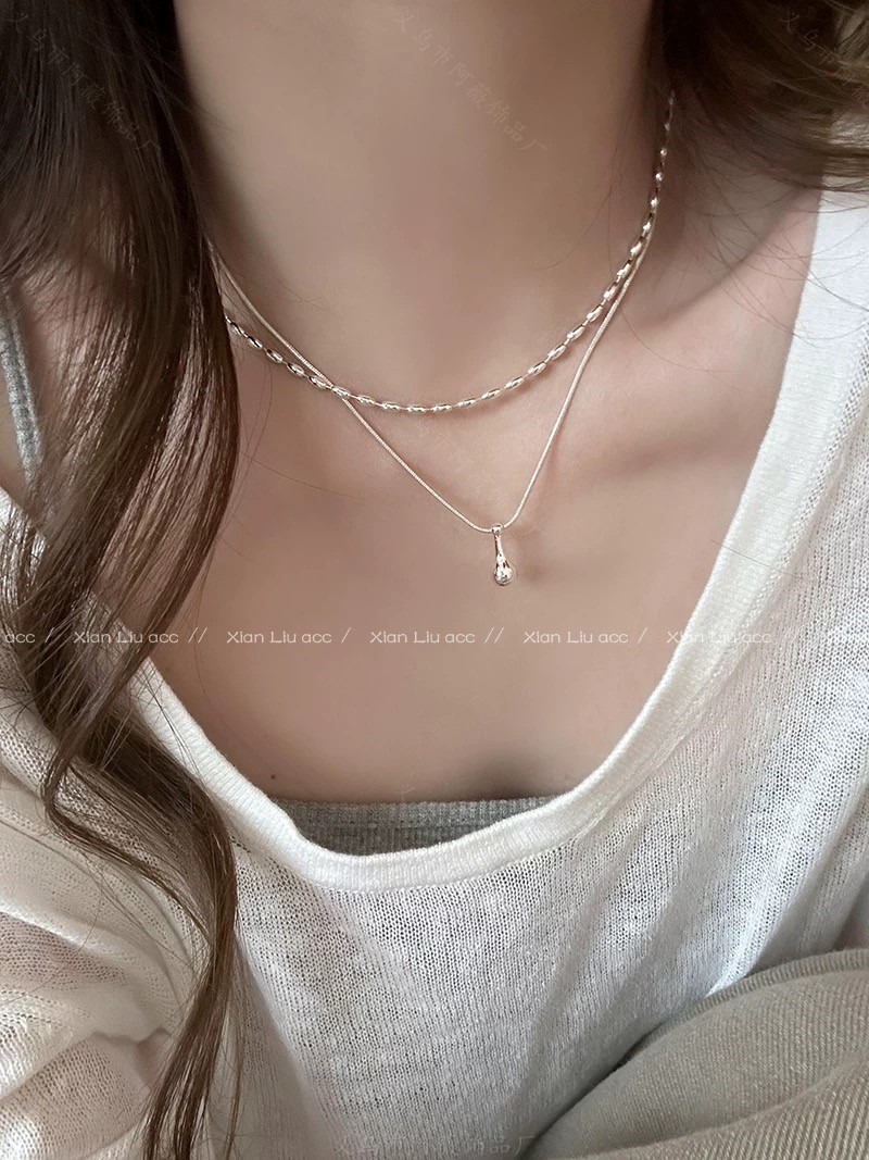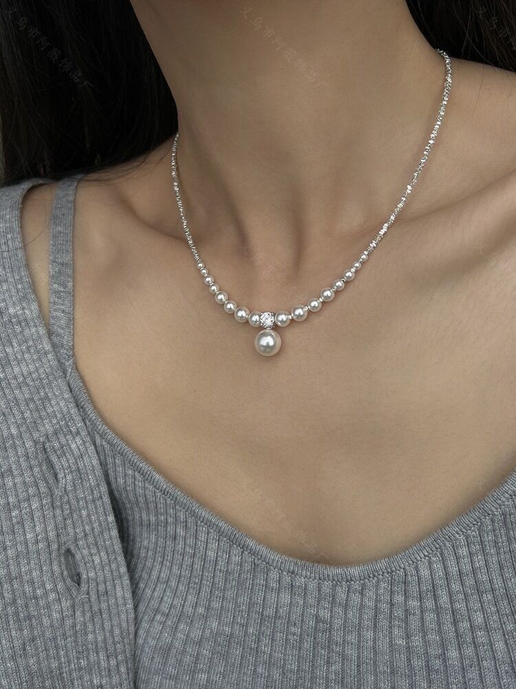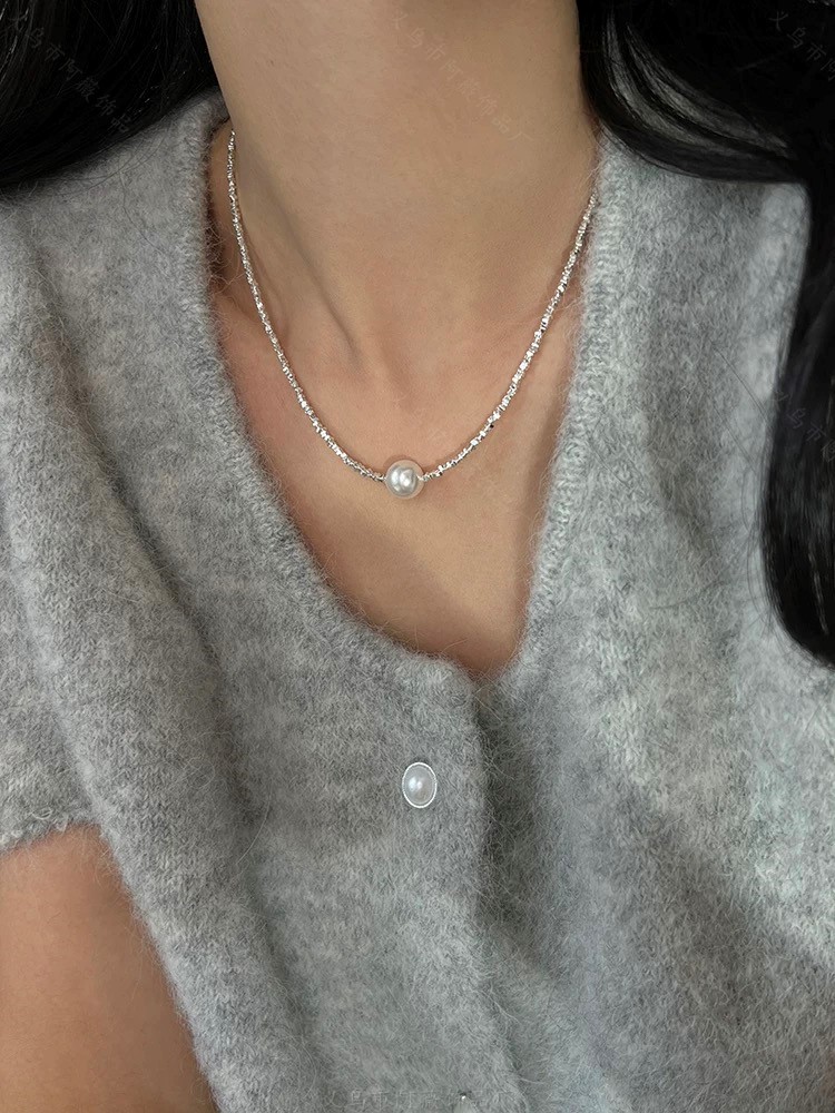 Shijia パールブロークンシルバーネックレスレディースライトラグジュアリーニッチハイエンドインターネットセレブ鎖骨チェーン優しい気質多用途ネックレス