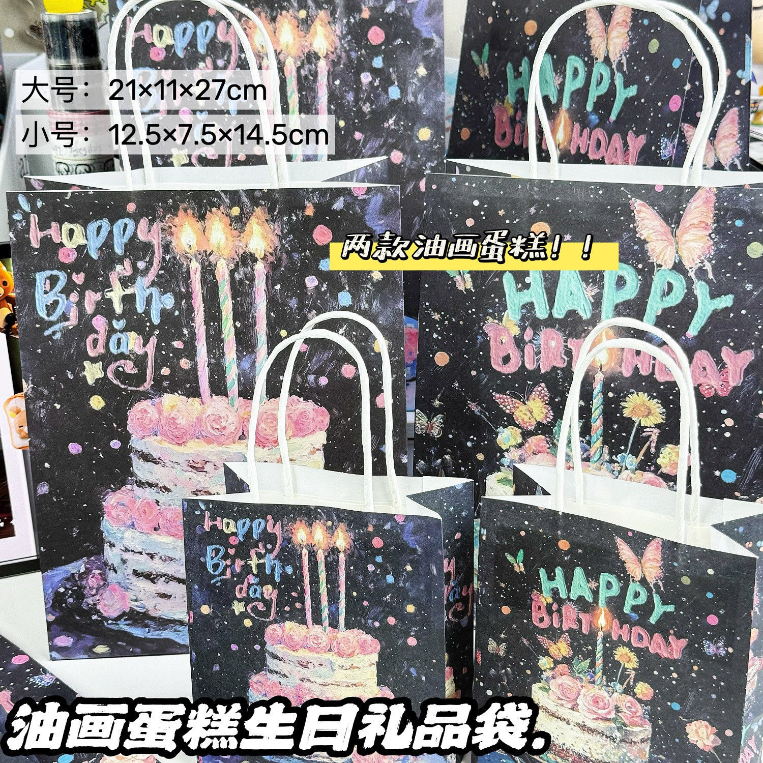 油絵ケーキギフトバッグロマンチックな見栄えの良いクラフト紙バッグ大容量の祝福親友の誕生日クリエイティブギフトバッグ