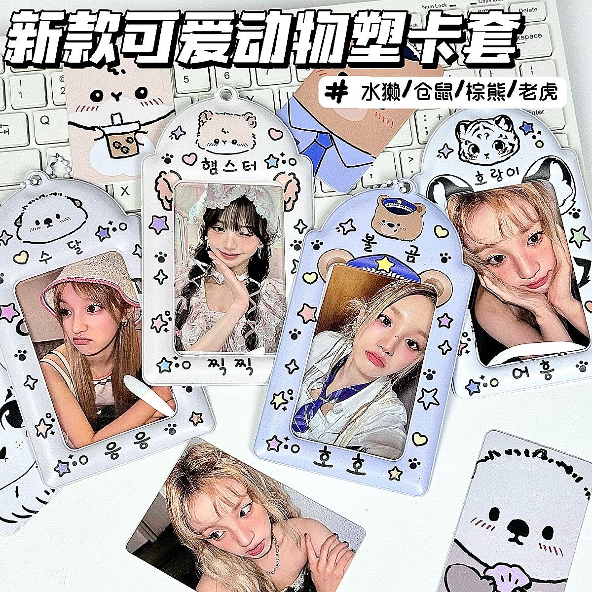 Ins風動物プラスチックカードセットシリーズかわいいオリジナル3インチカード展示愛豆飯カード収納バッグストラップ