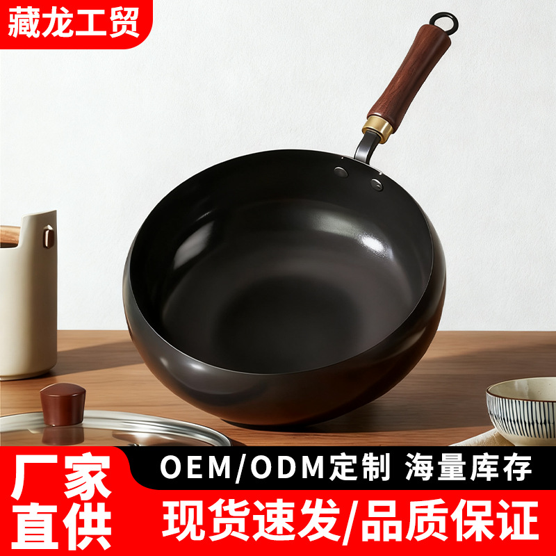 传统大肚锅章丘铁锅家用铁锅手工炒菜锅涂层辅食平底锅不粘锅炒锅