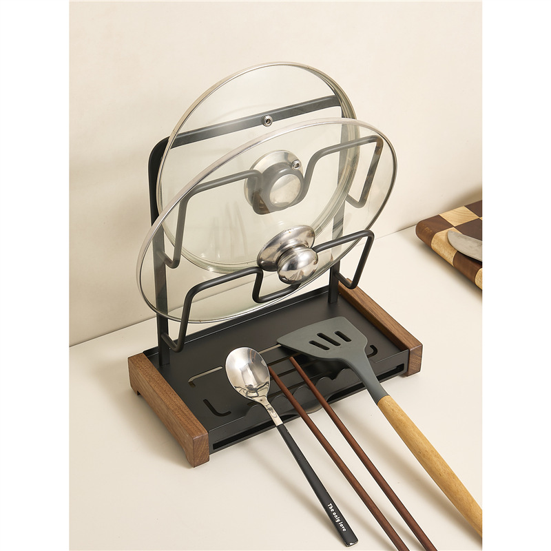 胡桃木中古风台面锅盖架厨房放砧板神器菜板置物架子案板锅铲支架