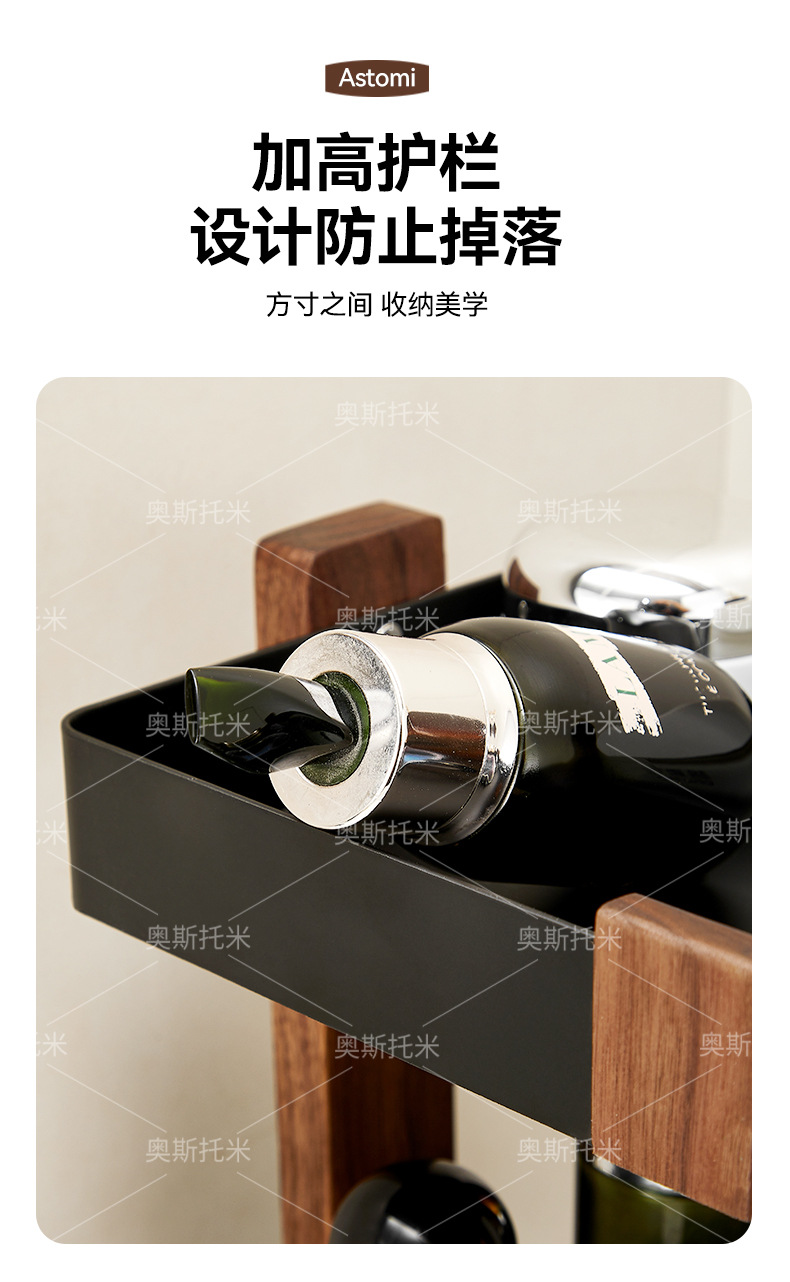 胡桃木家用调味架中古风厨房置物架储物架免打孔台面调料品收纳架