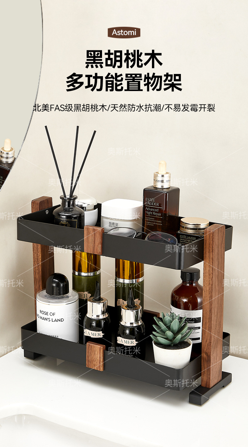 化粧品スキンケア収納香水棚二重黒胡桃木質実木高級感新中国式物置棚