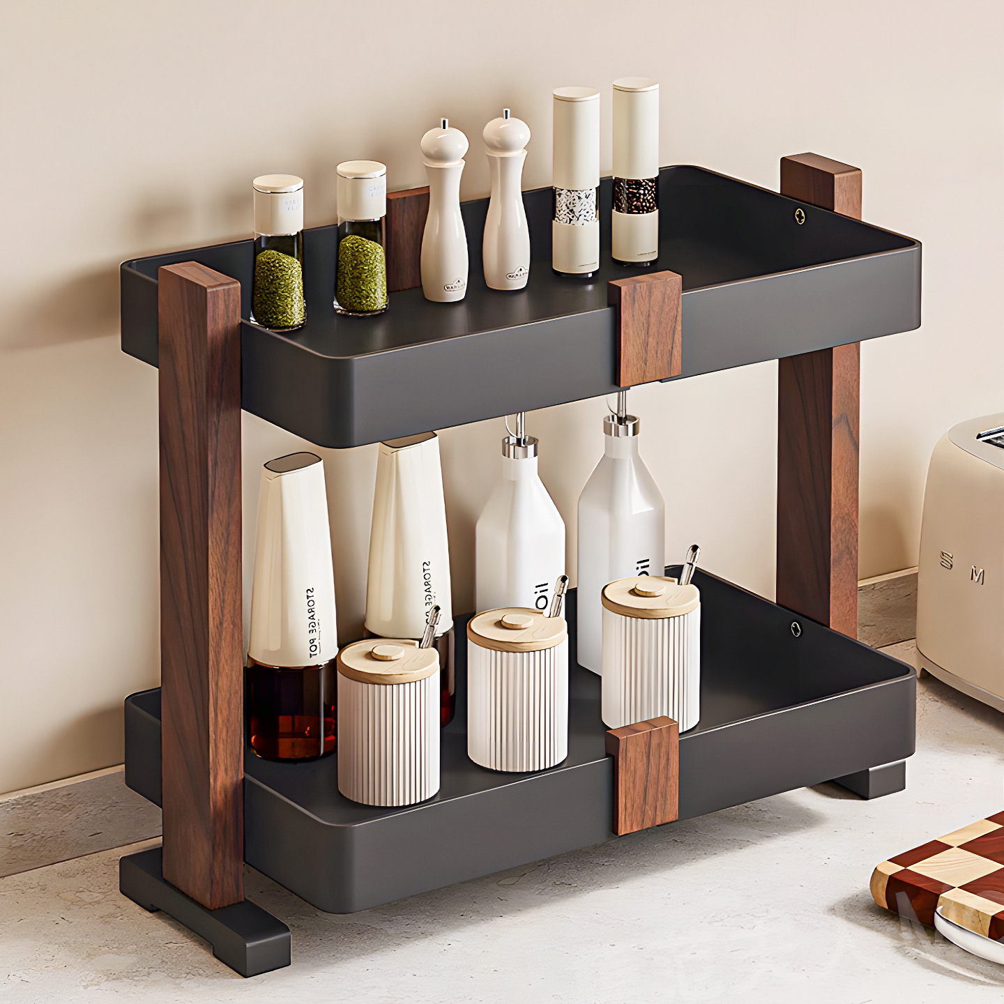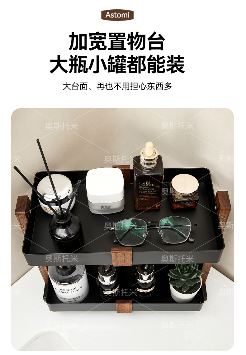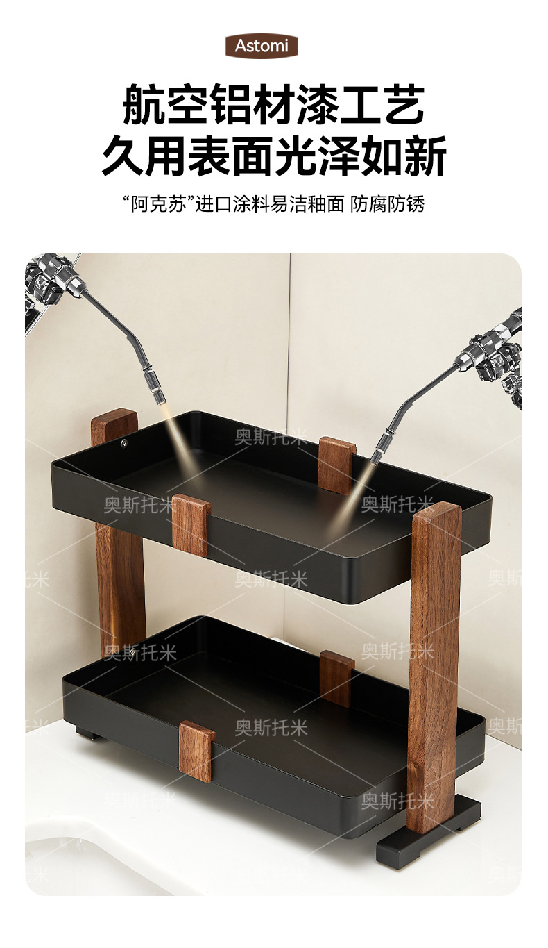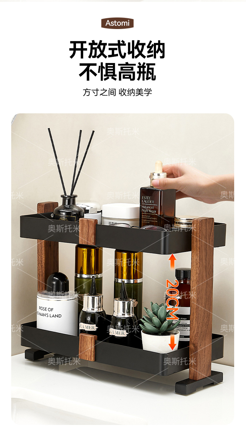 实木铁艺桌面双层收纳架调味架浴室化妆品多层置物架厨房台面收纳