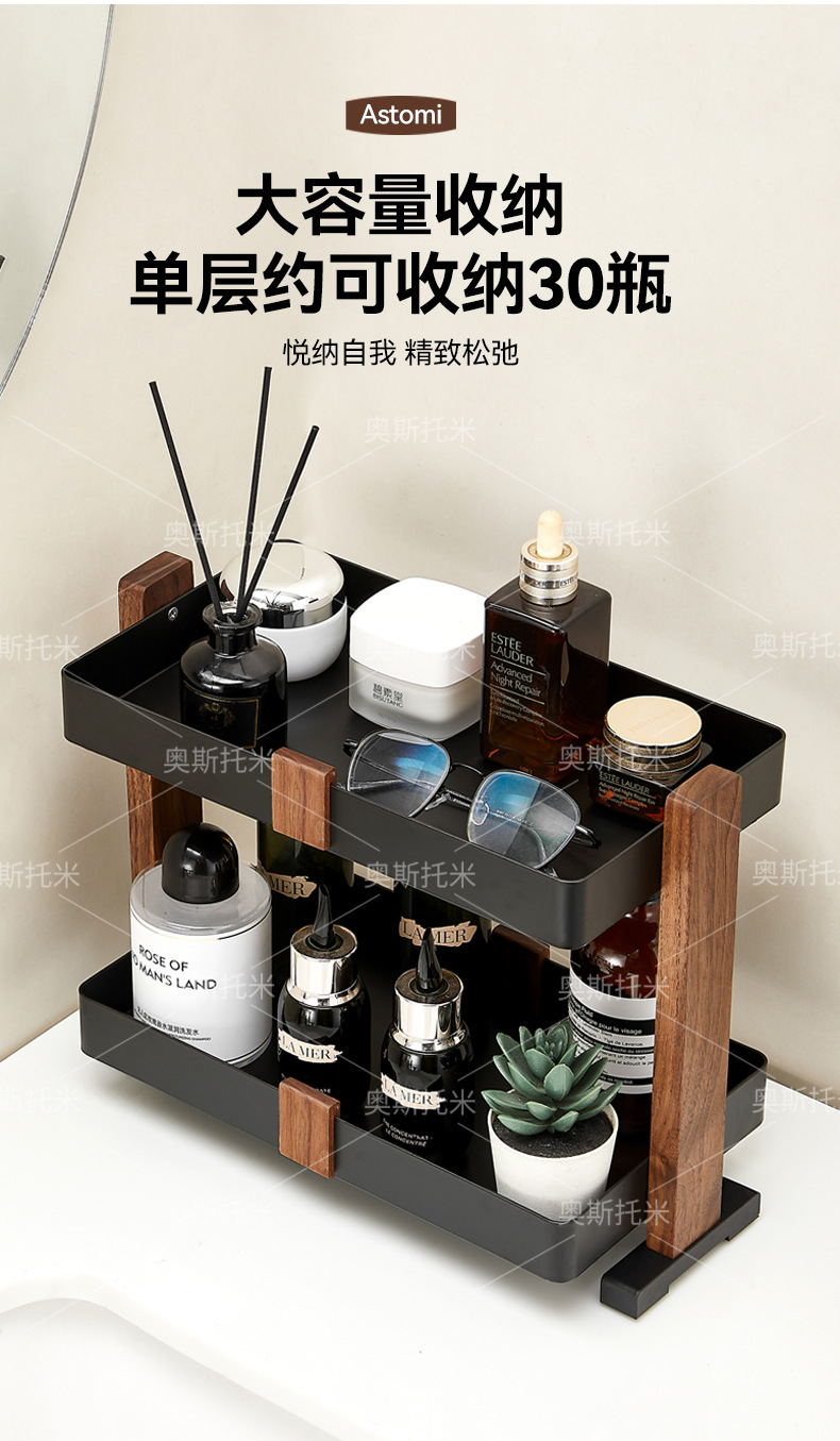 トイレ洗面台化粧スキンケア軽豪華胡桃木化粧品収納ケースデスクトップ棚実木二階