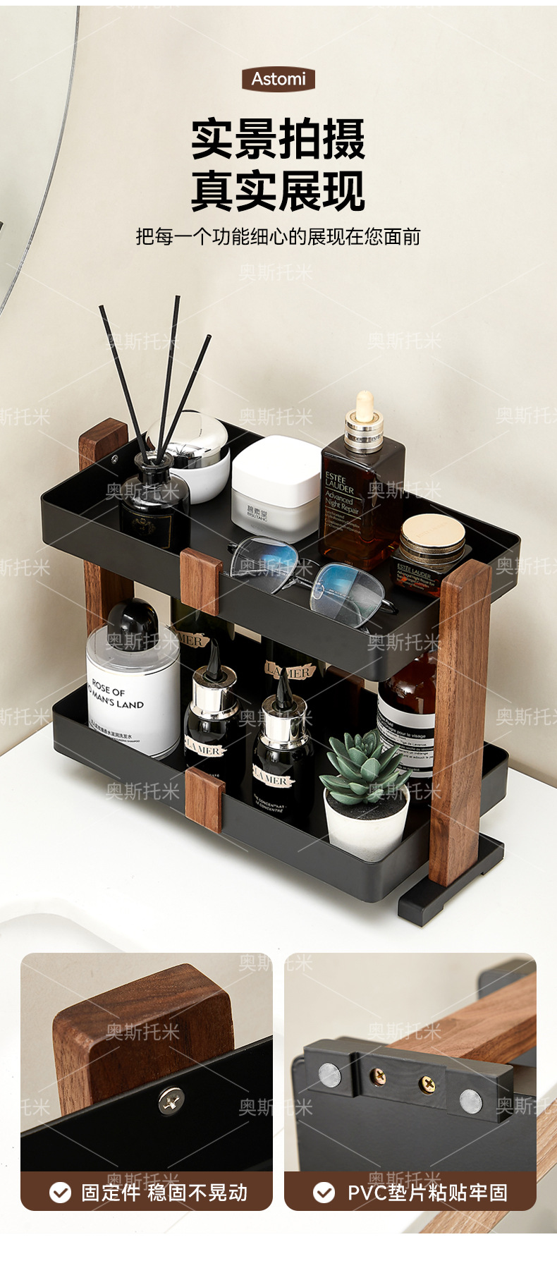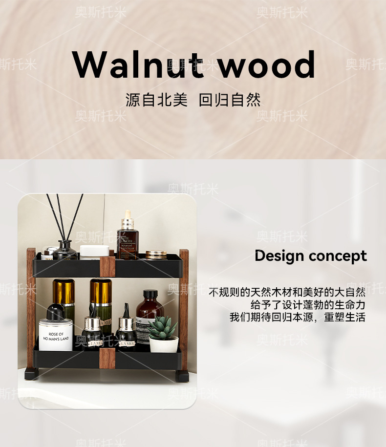 ウォールナット浴室シンクスキンケア化粧品収納ラック浴室シンクデスクトップドレッシングテーブル収納ボックス