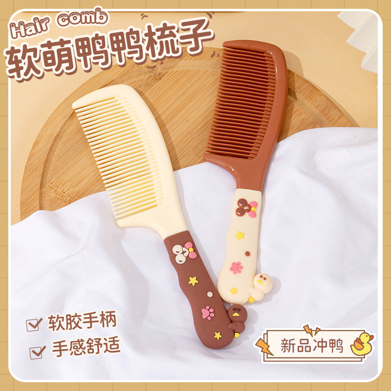 趴丫丫可爱鸭子卡通梳子便携顺发塑料梳子儿童家用软胶手柄美发梳