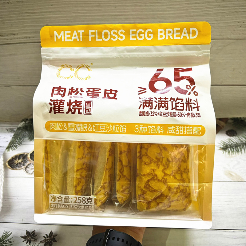 CC肉松卵皮灌焼パン258g袋入り雪媚娘赤豆砂粒あん菓子ソフト栄養朝食