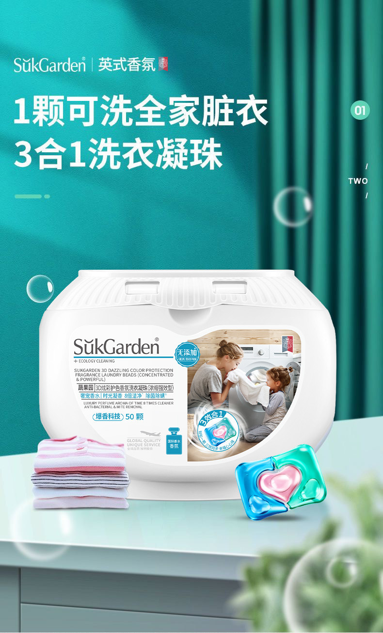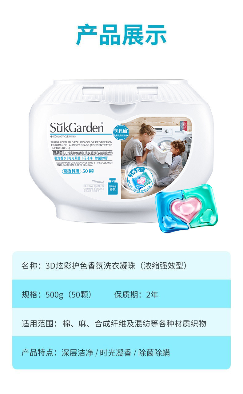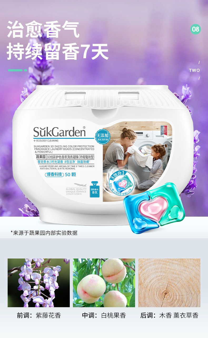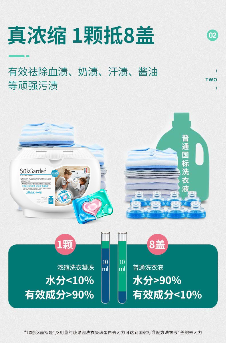【茉莉白山茶香】蔬果园3效合1洗衣凝珠强力去污留香除菌除螨爆香