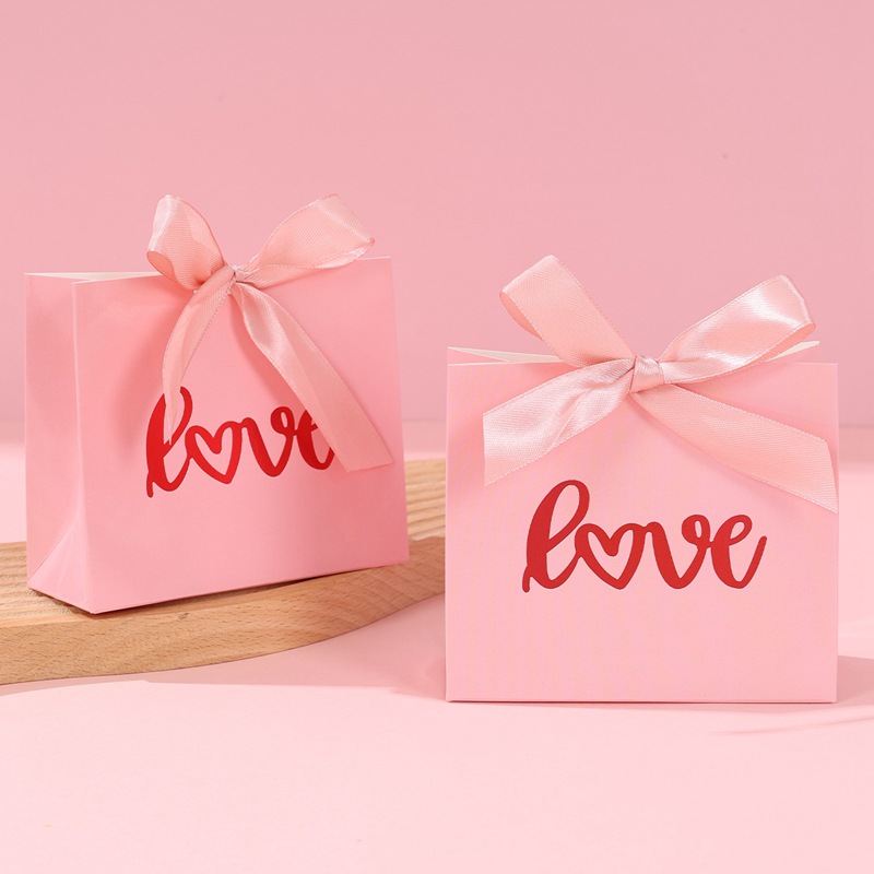产品名称:现货情人节粉色烫金love丝带礼品盒节日派对布置装饰小盒子10个装
