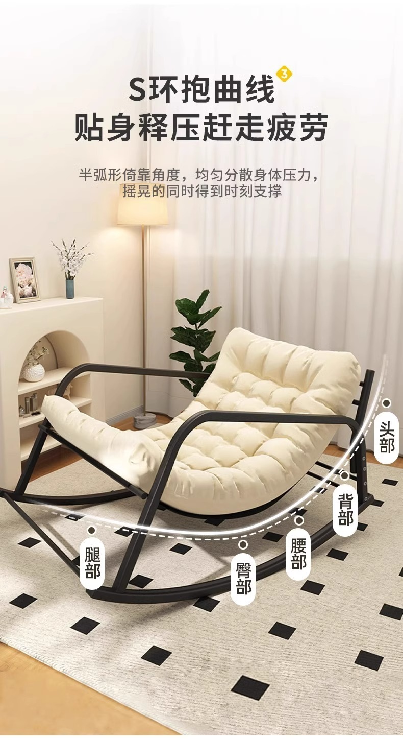 ロッキングチェア大人ダブルインターネット有名人バルコニーリビングルームレジャーチェアリクライニングチェア折りたたみ北欧テクノロジー布怠惰な椅子