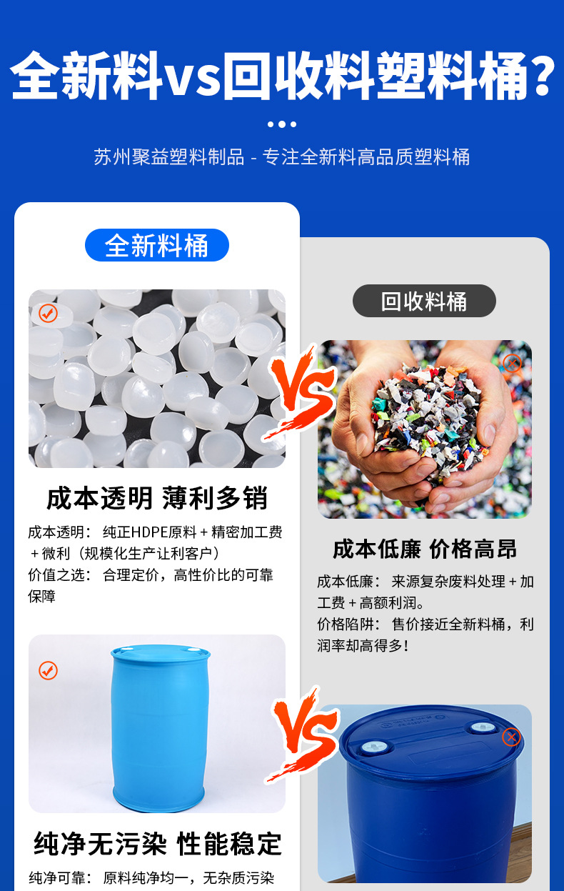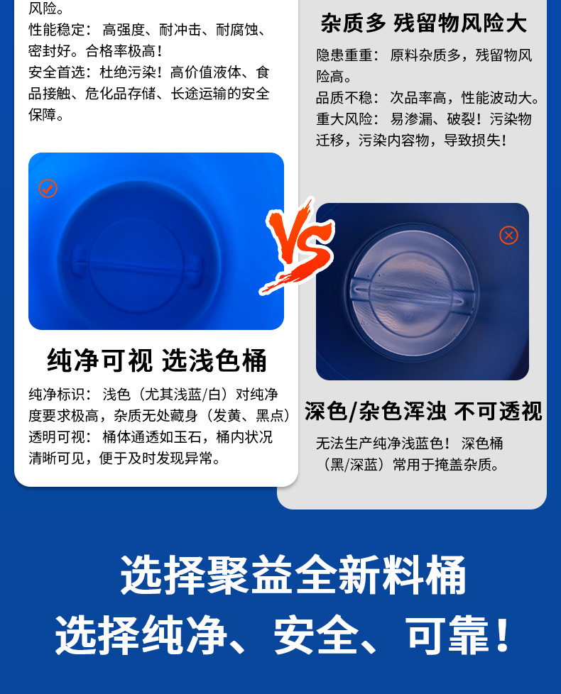 Juyi 200L 化学工業用バケツ、壊れない、耐酸性および耐アルカリ性廃液バケツ、二層フラット二重リング厚みのあるプラスチックバケツ