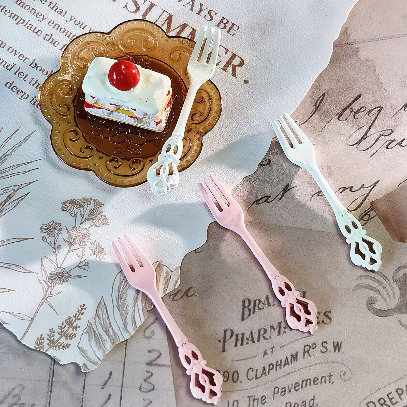 复古合金餐具彩色~奶油胶仿真食玩美甲手机壳卡通树脂配件diy饰品