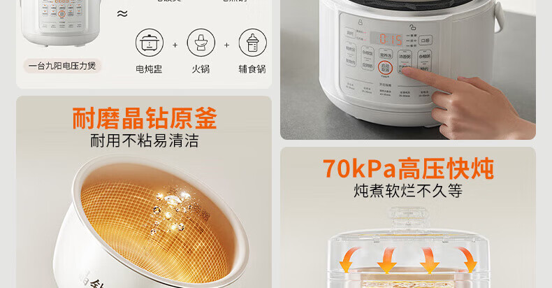 九阳Y-30Z3电压力锅家用3L多功能新款0涂层全自动电高压锅电压锅