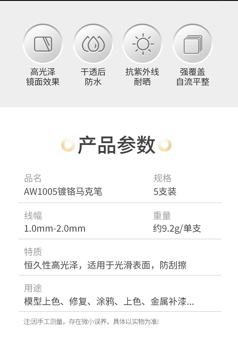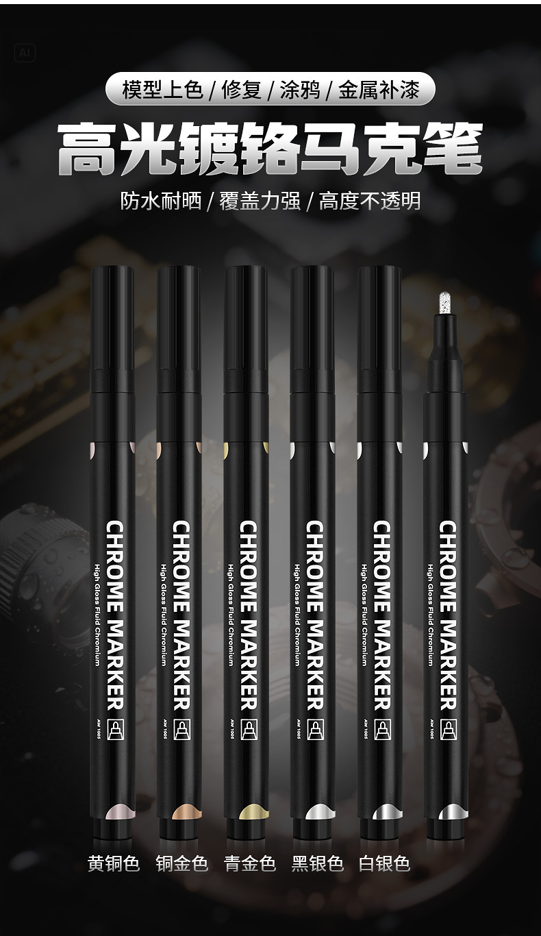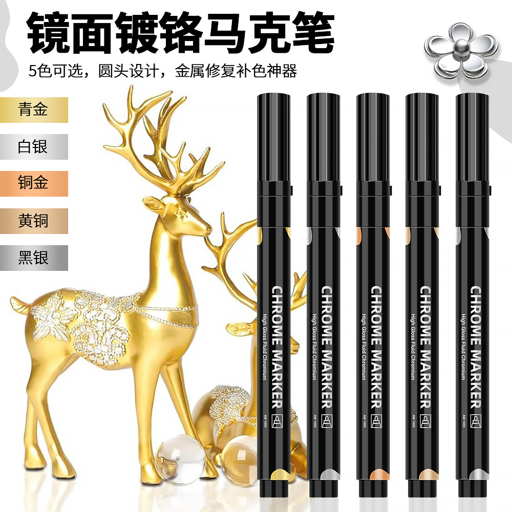 金属色鏡面クロムメッキマークペンハイライト塗装ペンdiyモデル塗装補色防水金属ペン卸売り
