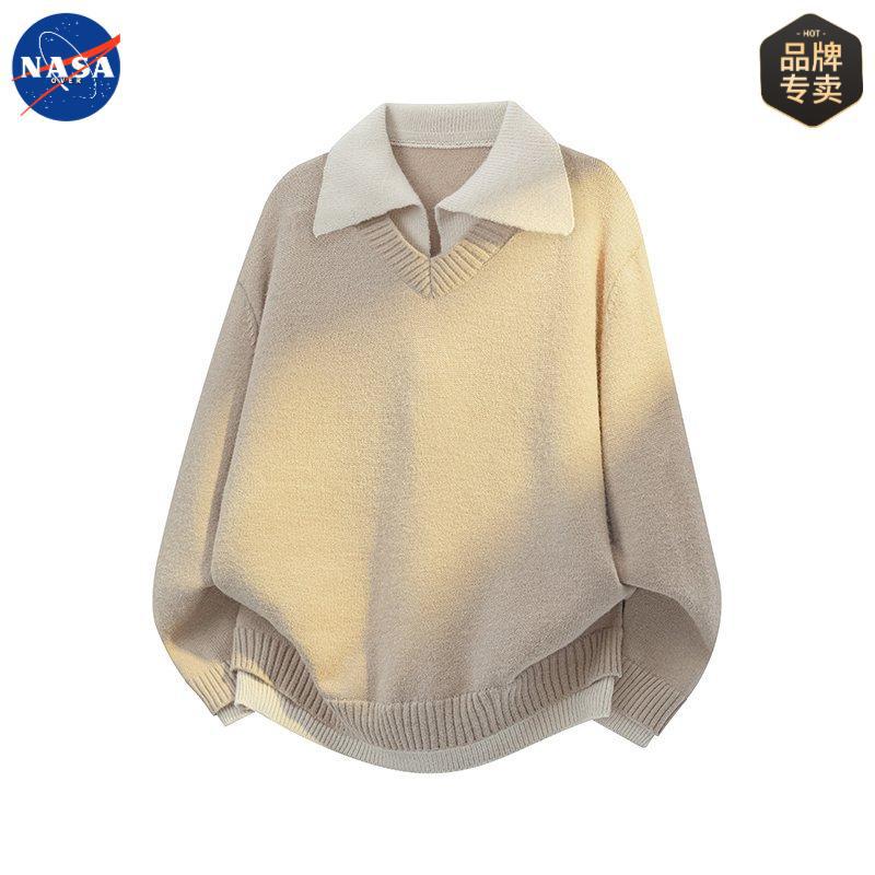 NASA品牌秋冬季假两件设计感保暖毛衣男士休闲百搭高端POLO毛线衣