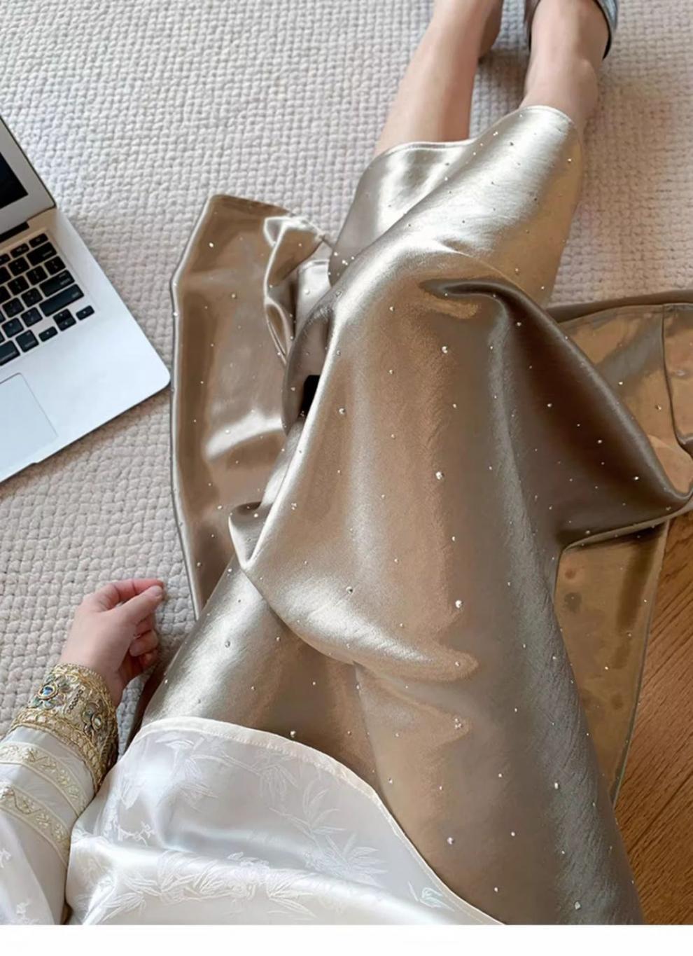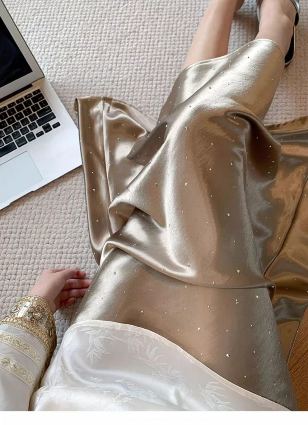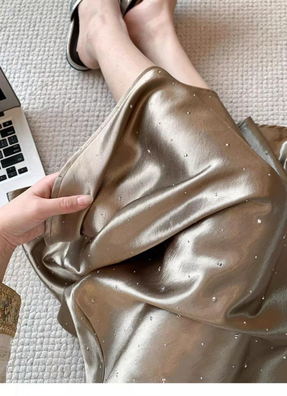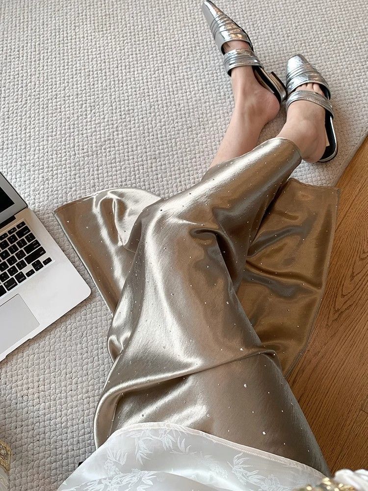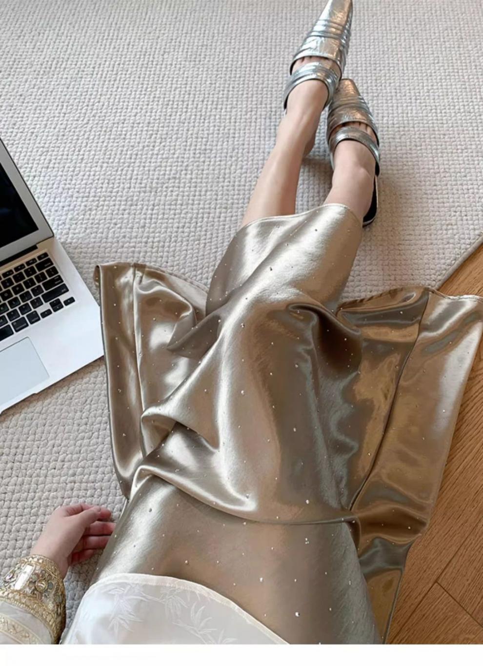 ファットmmハイエンドホットダイヤモンドサテンフィッシュテールスカート女性用2025新しいフレンチスタイルハイウエストスリムヒップスカート