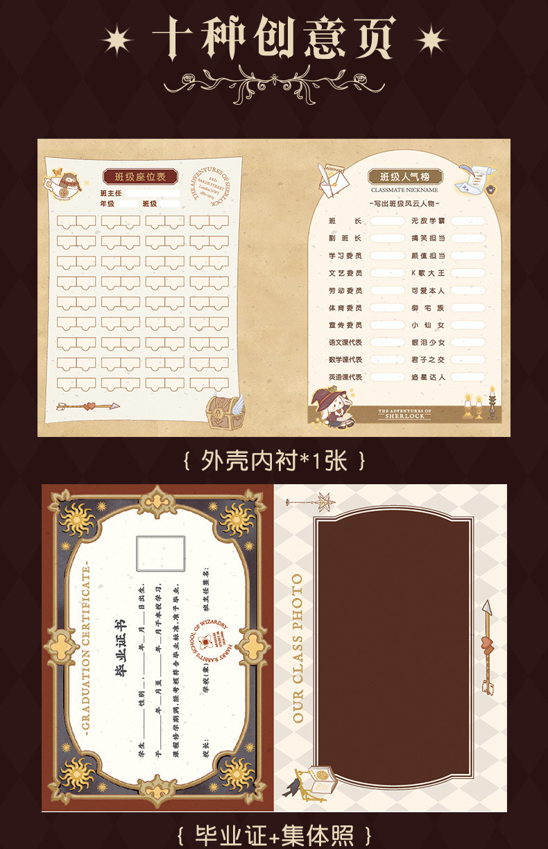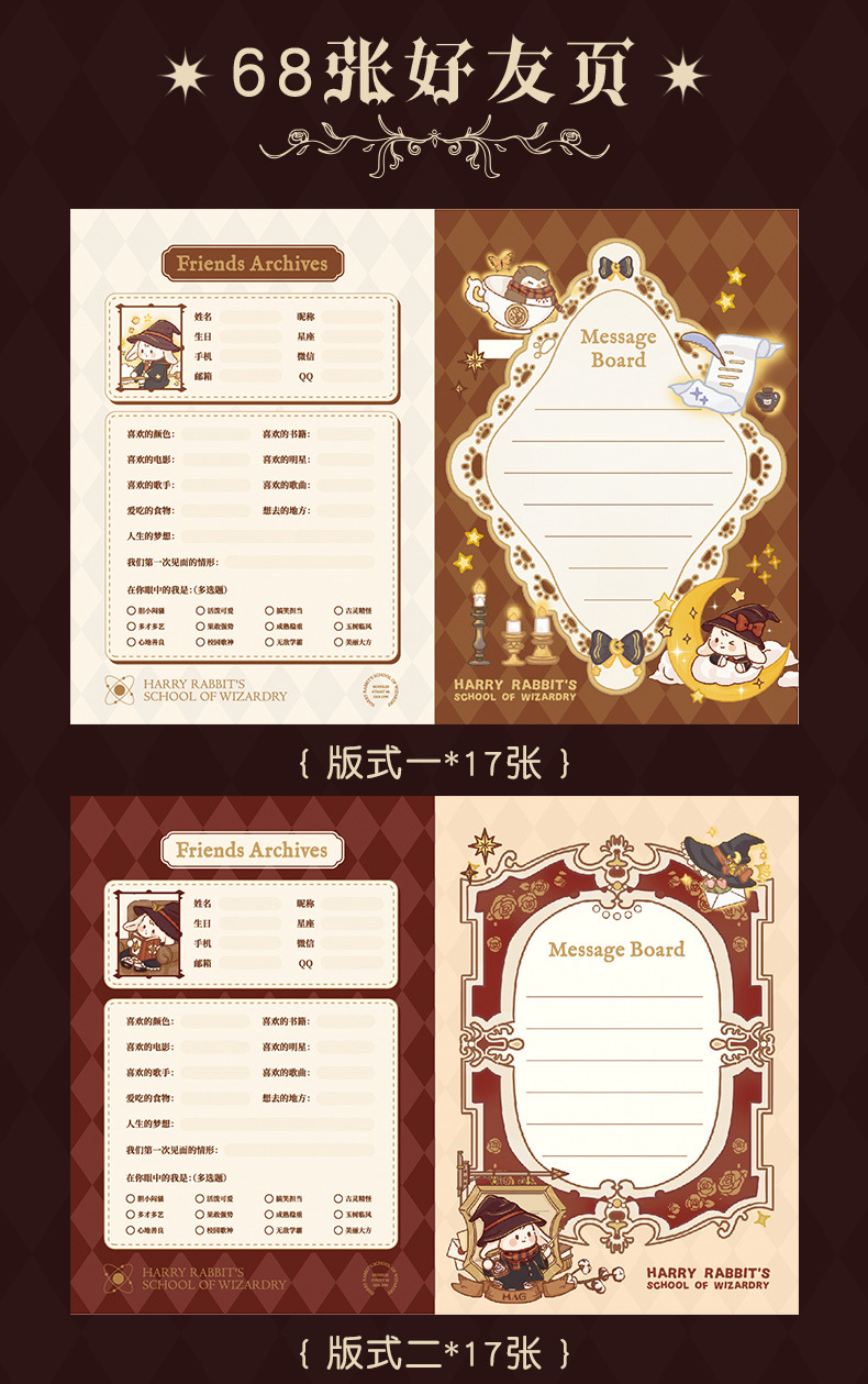 カバーカラー ホーリーアーティファクトミステリー(内側80ページ/フレンドページ68ページ),ポーション精錬 (内側のページ 80 ページ/友達ページ 68 ページ),イブニングキャンパス(内部ページ80ページ/友達ページ68ページ),斜めストア (80 の内部ページ/68 の友人のページ),レトログリーン (内側のページ 68 ページ/友達ページ 58 ページ),ディープブルー (内側のページ 68 ページ/友達ページ 58 ページ),ダークナイトレッド (内側のページ 68 ページ/友達ページ 58 ページ),マジックブラウン (内側のページ 68 ページ/友達ページ 58 ページ),Chaohe (内側のページ 80 ページ/友達ページ 68 ページ)