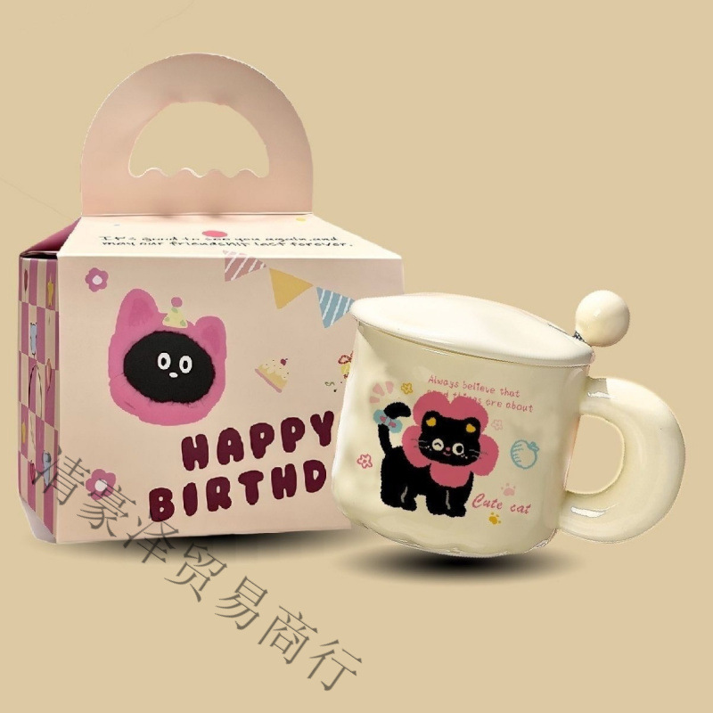 ガーリーな子猫マグカップ、蓋付きのかわいい家庭用ウォーターカップ、姉妹や友人の誕生日に