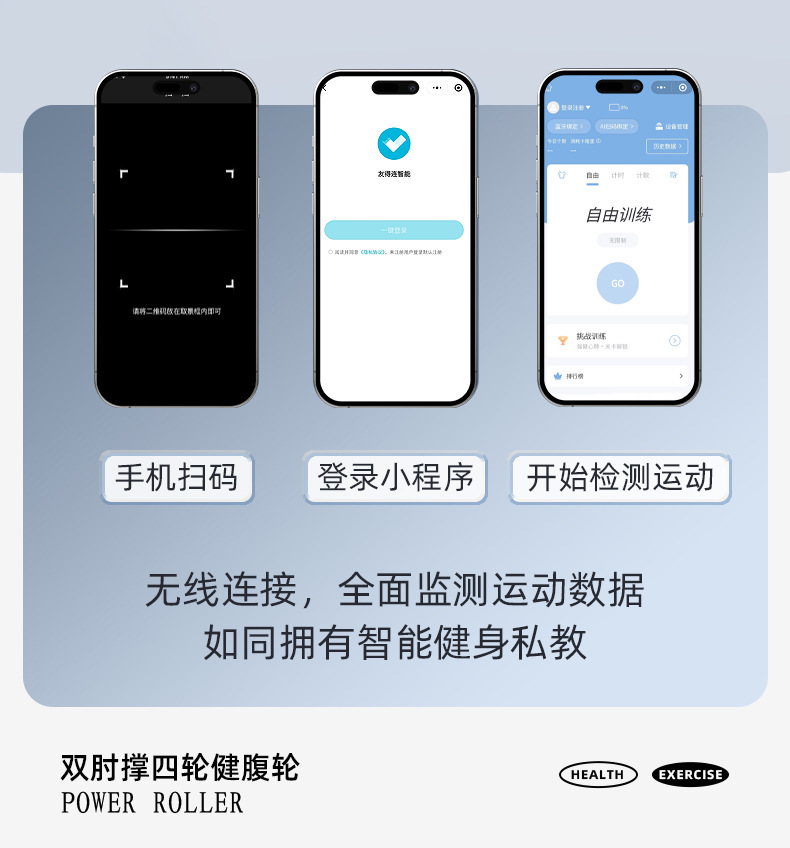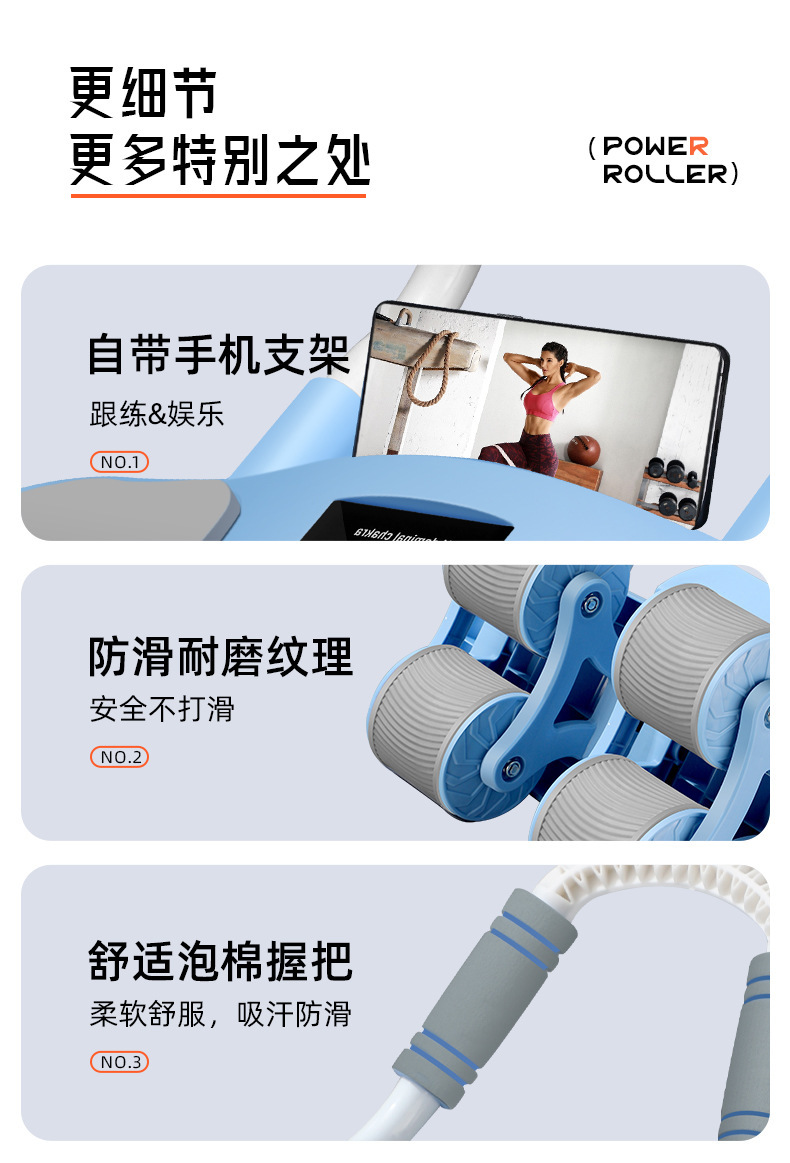 健腹轮四轮肘撑智能计时手机支架自动回弹平板支撑卷腹二合一
