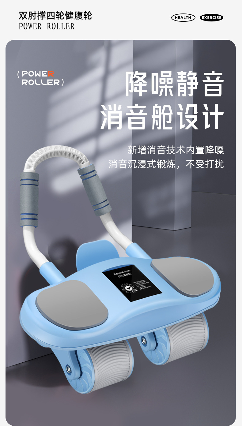 跨境新款四轮健腹轮肘撑智能计时手机支架自动回弹平板支撑卷腹器