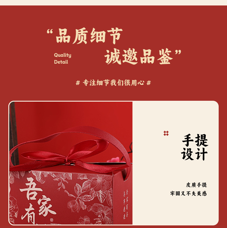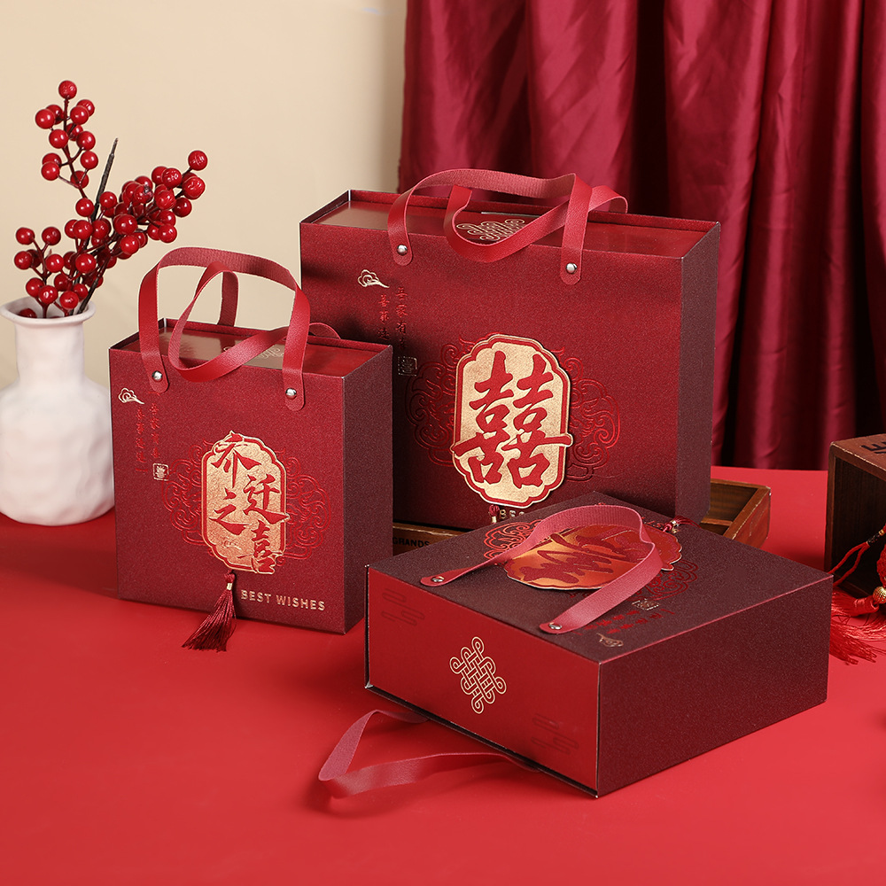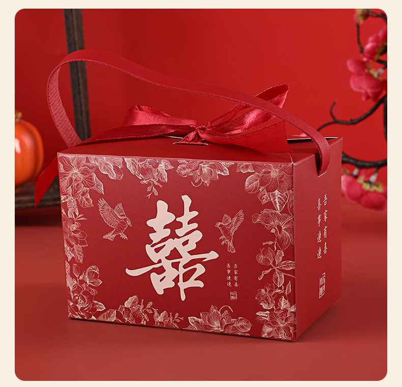中式婚庆伴手礼盒乔迁大寿抽屉手提结婚订婚手提烫金喜糖包装盒
