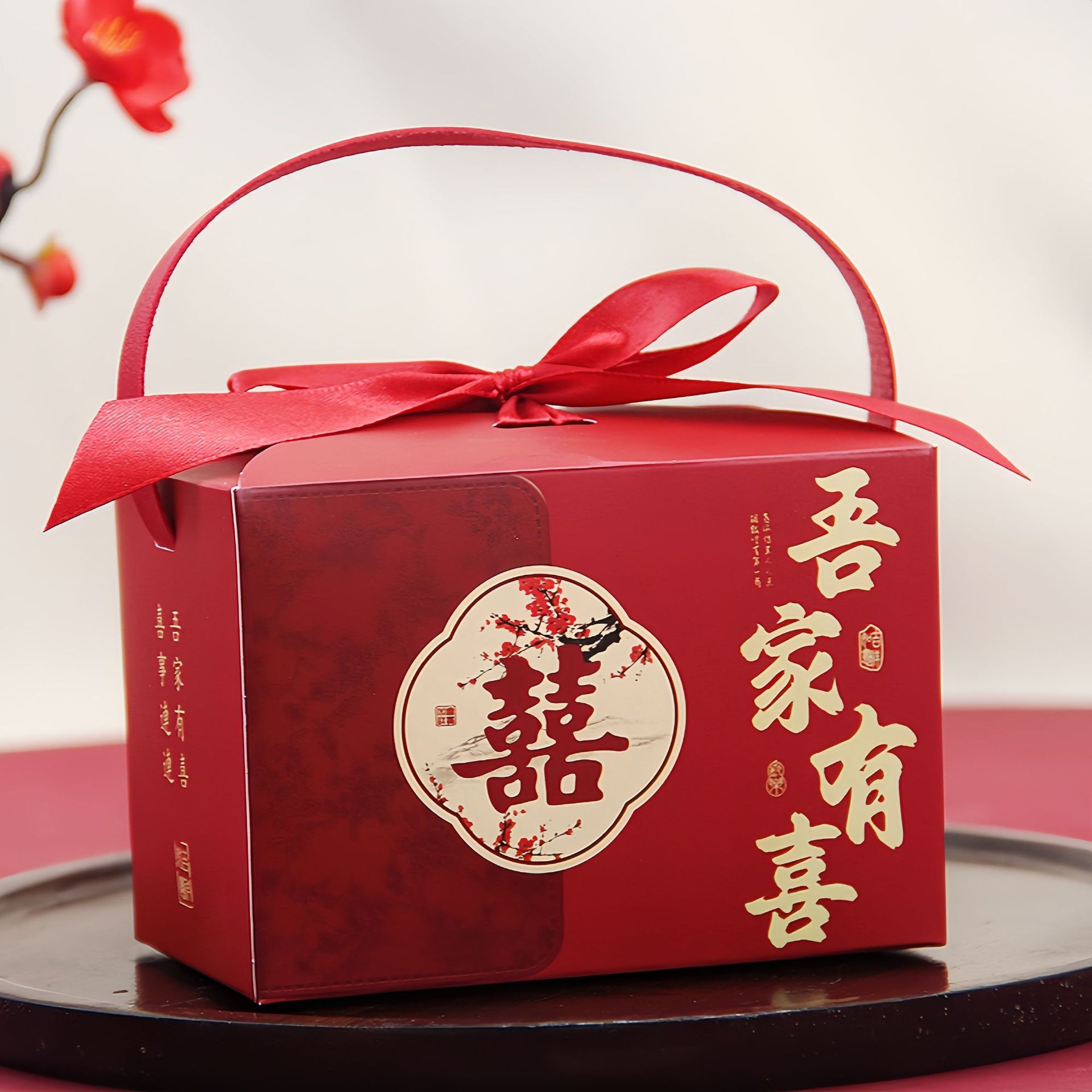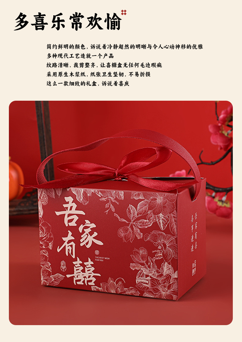 My Home is Happy ライト高級ギフトボックス 新中国風のウェディングキャンディボックス ポータブルウェディングキャンディボックス 空箱 正方形のウェディングペーパーボックス