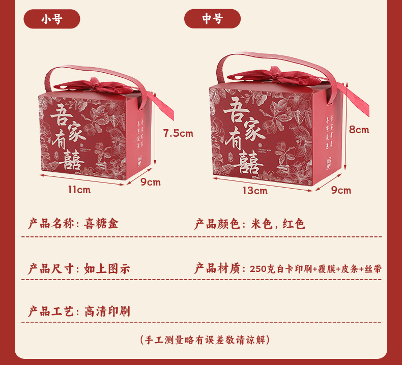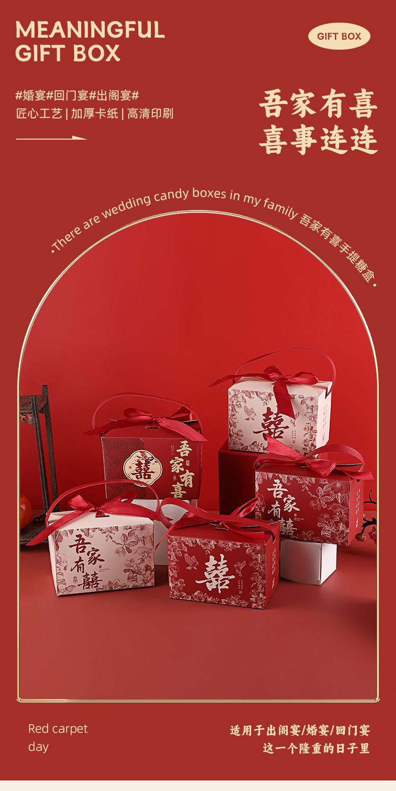 小紅書と同じスタイルのウェディングキャンディボックス、ウェディングキャンディギフト空箱、クリエイティブな結婚式の手持ち式キャンディ包装箱