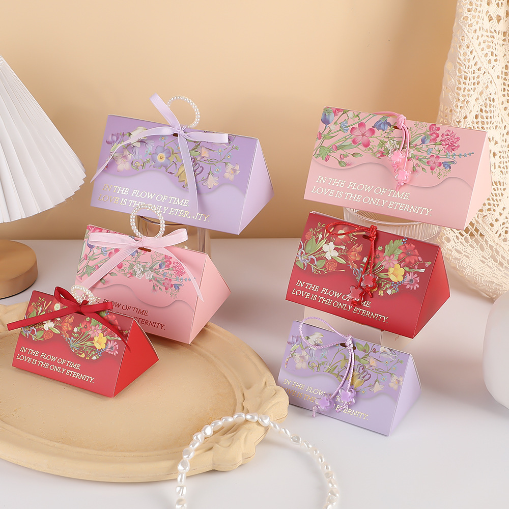 花卉三角形喜糖盒创意珍珠手提喜糖盒结婚小众ins风礼品盒伴手礼