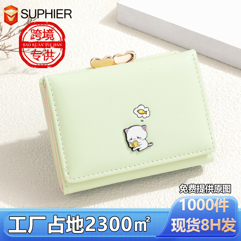 国境を越えた現物財布ins女子かわいい子猫小銭入れ小型シンプルなpu皮三つ折り財布