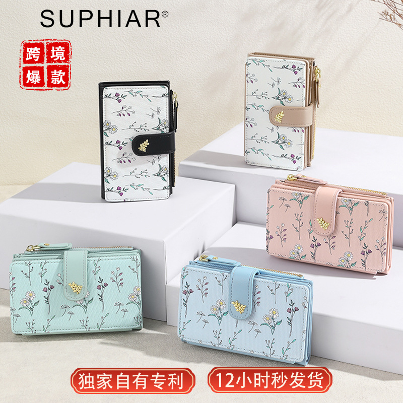 新型クロスボーダーオリジナル草花レディースショート財布日本式小銭入れ三つ折り財布レディース高級感