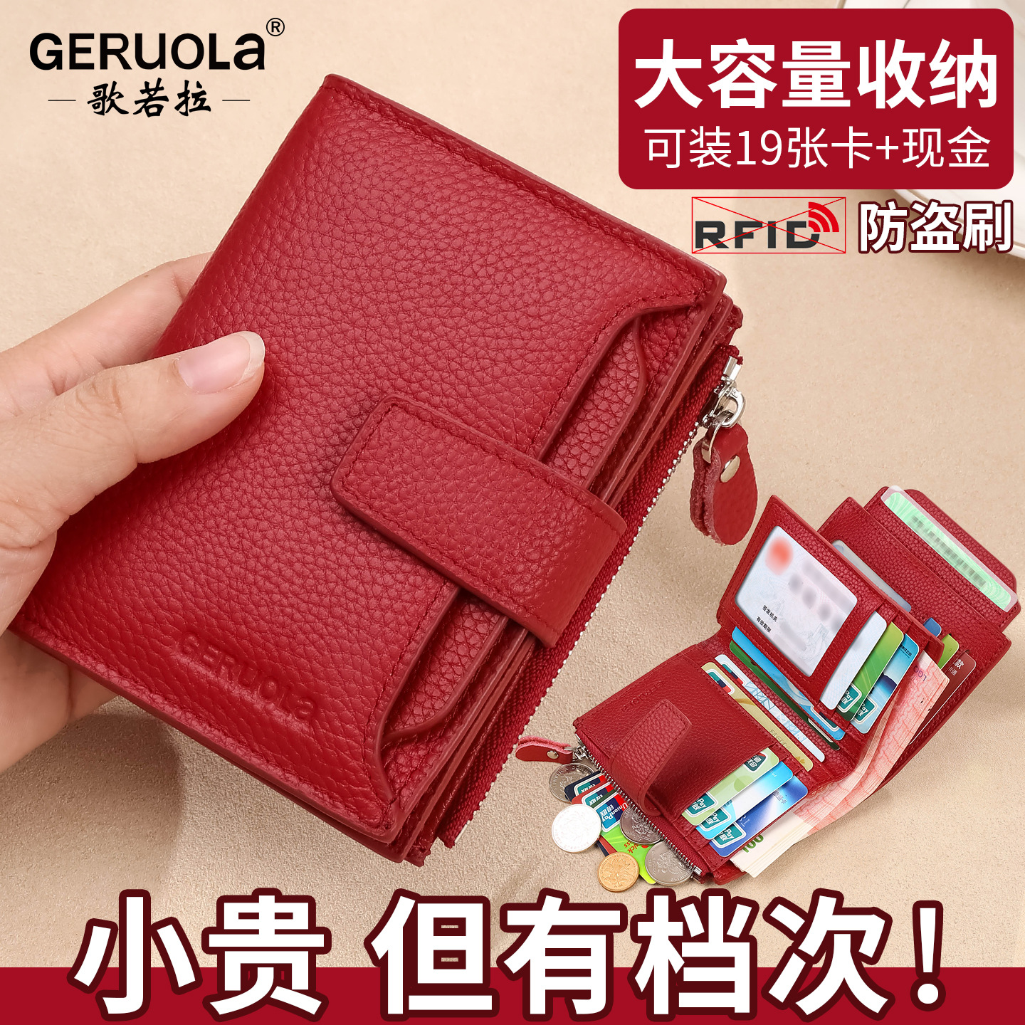クロスボーダー本革レディース財布ショート牛革多機能財布RFID盗難防止ブラシ小銭入れカードバッグウォレット