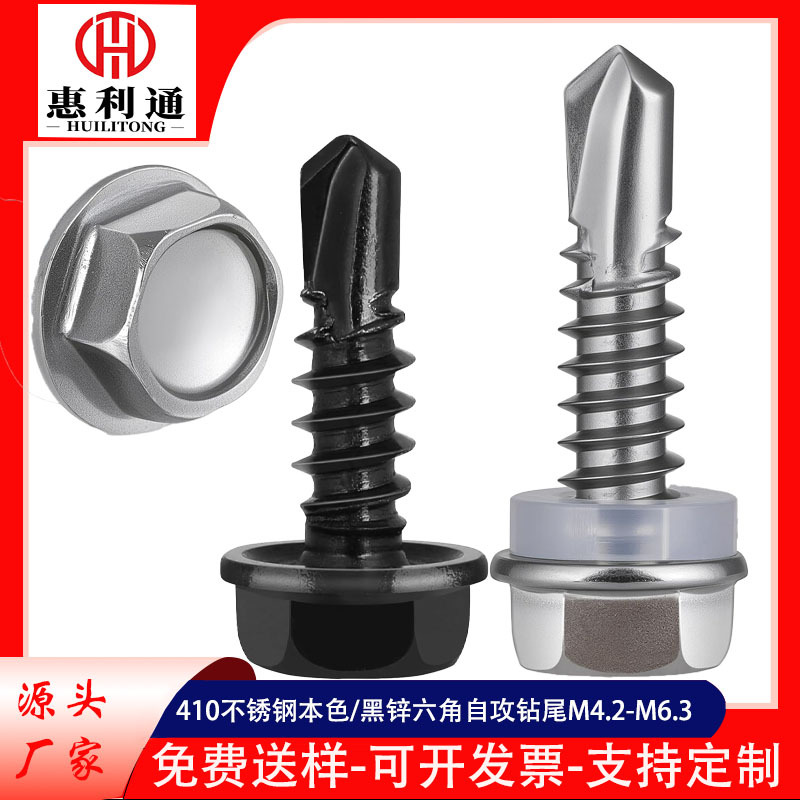 410 ステンレス鋼ナチュラルカラー/黒亜鉛六角頭タッピングドリルテール M4.2M6.3 六角タッピングとドリルダブテールネジ