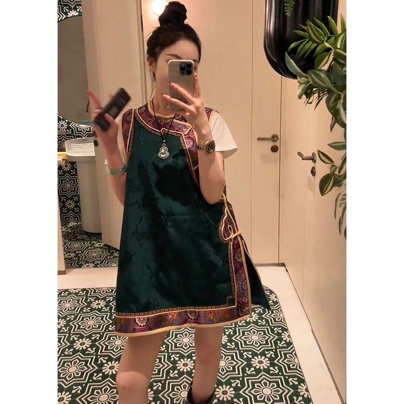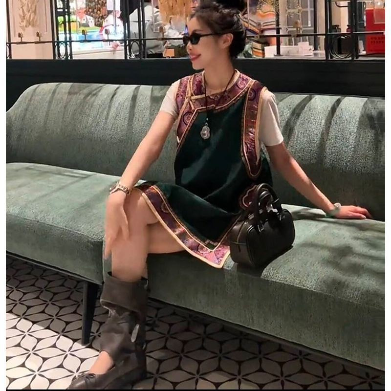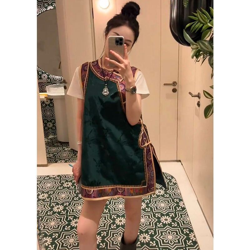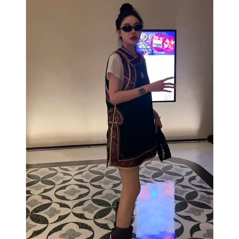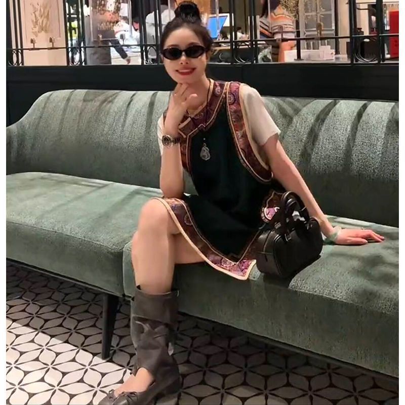 新しい中国風トップヨーロッパステーション 2025 夏の新ファッションミッドレングスカラーブロックラウンドネックルーズベスト女性のための
