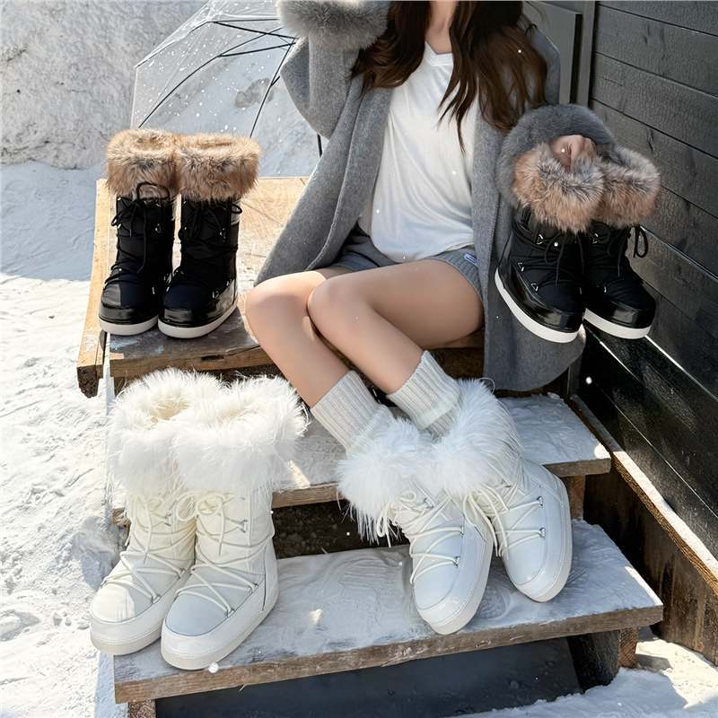 香港内冰岛雪地靴女2025秋冬新款厚底中筒毛毛靴防滑加绒棉鞋