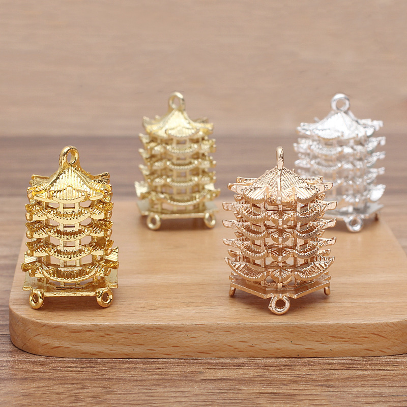 diy中式古风发簪配件合金发簪配件镂空凉亭汉服发饰吊坠厂家批发