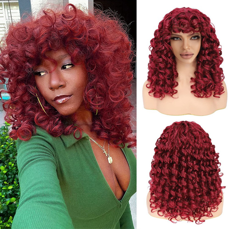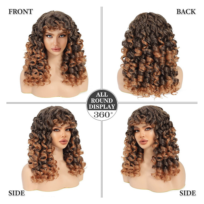 外贸新品欧美小卷卷女士假发化纤高温丝玫瑰网非洲小卷发头套