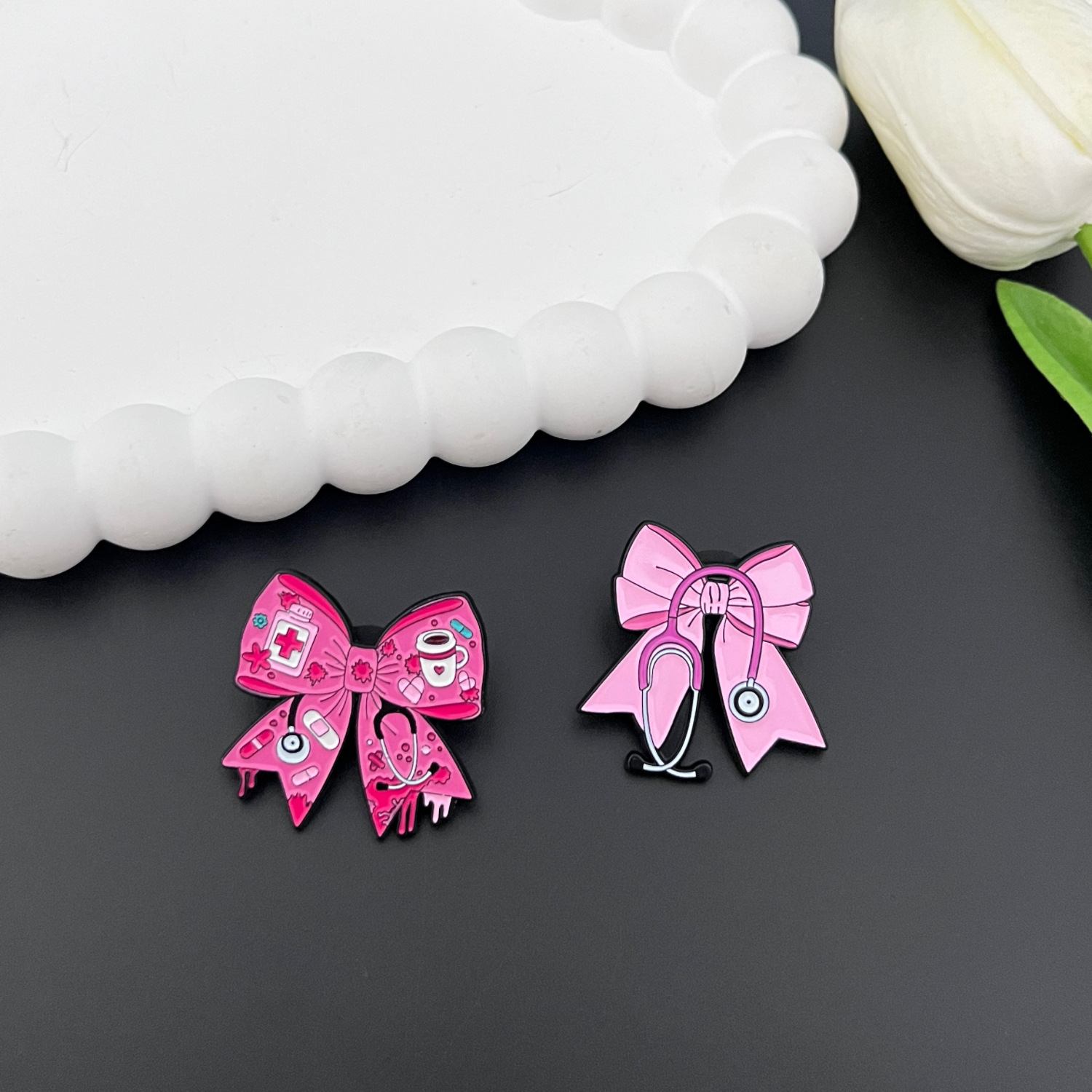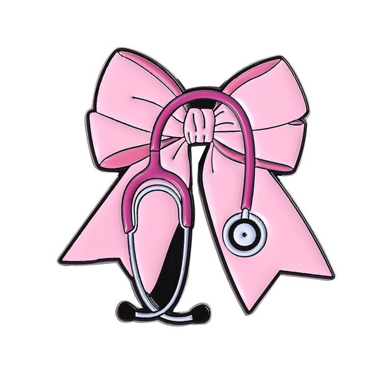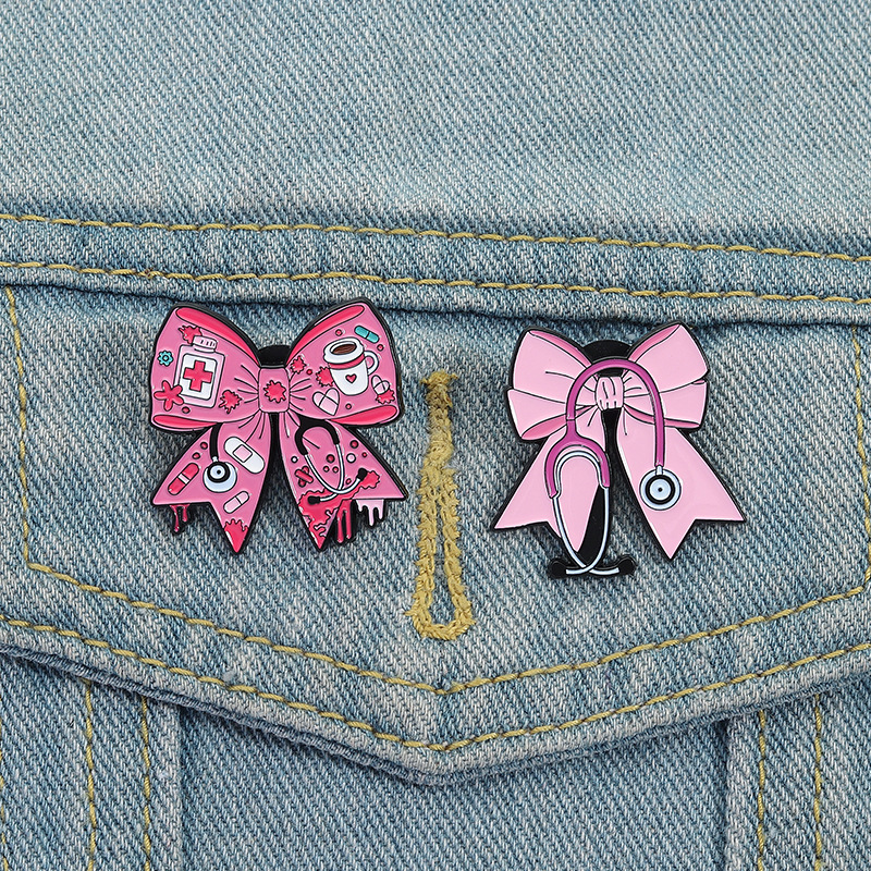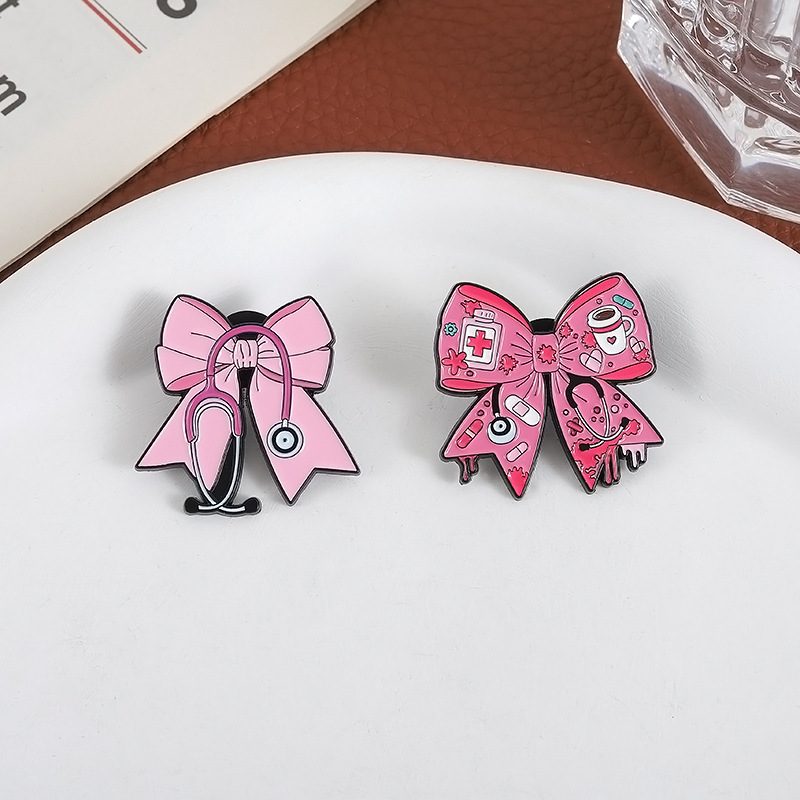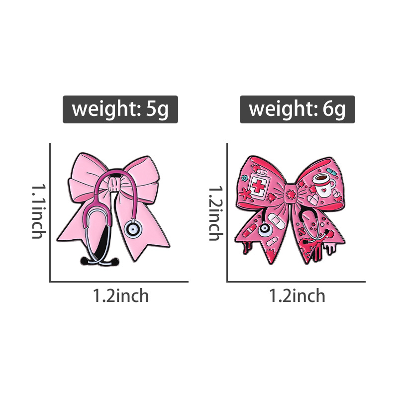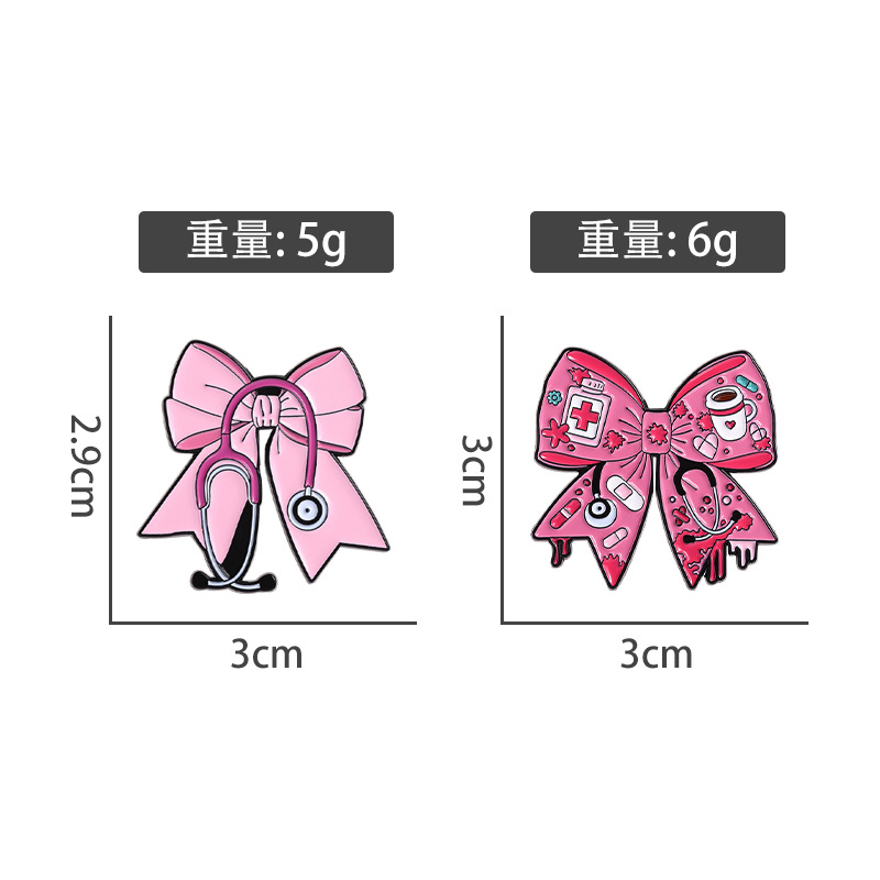 跨境新款个性医疗护士医生听诊器胸针创意卡通可爱粉色蝴蝶结徽章