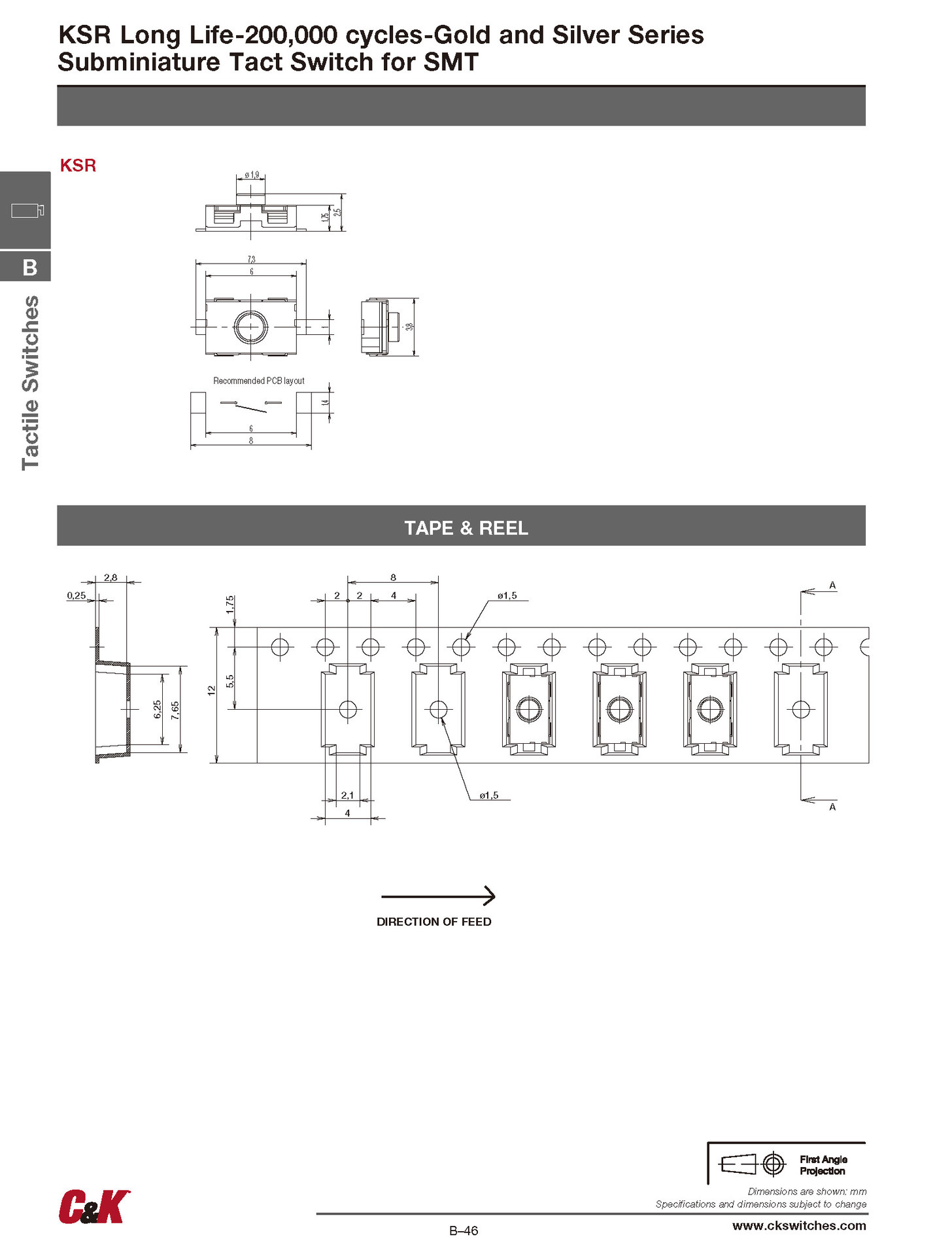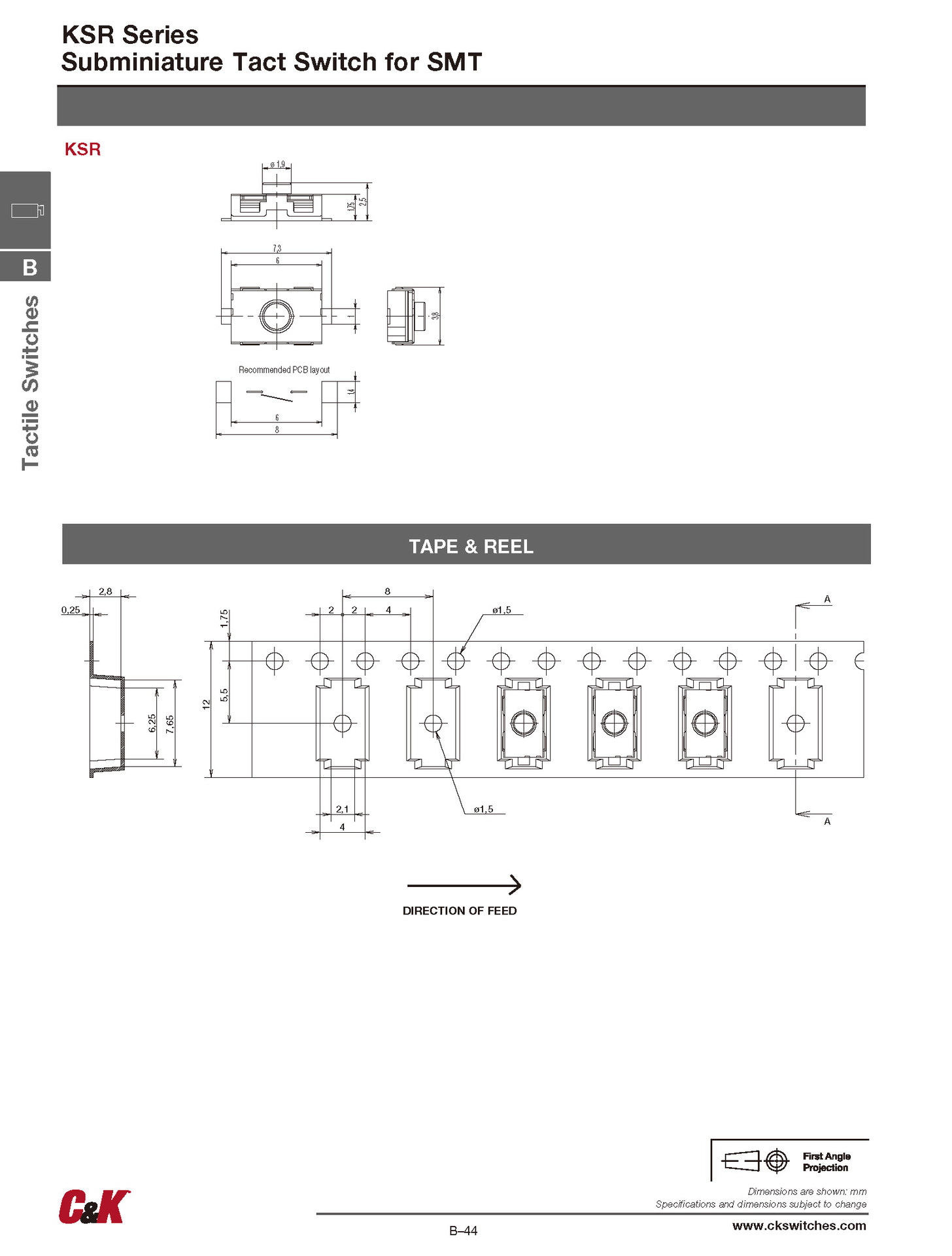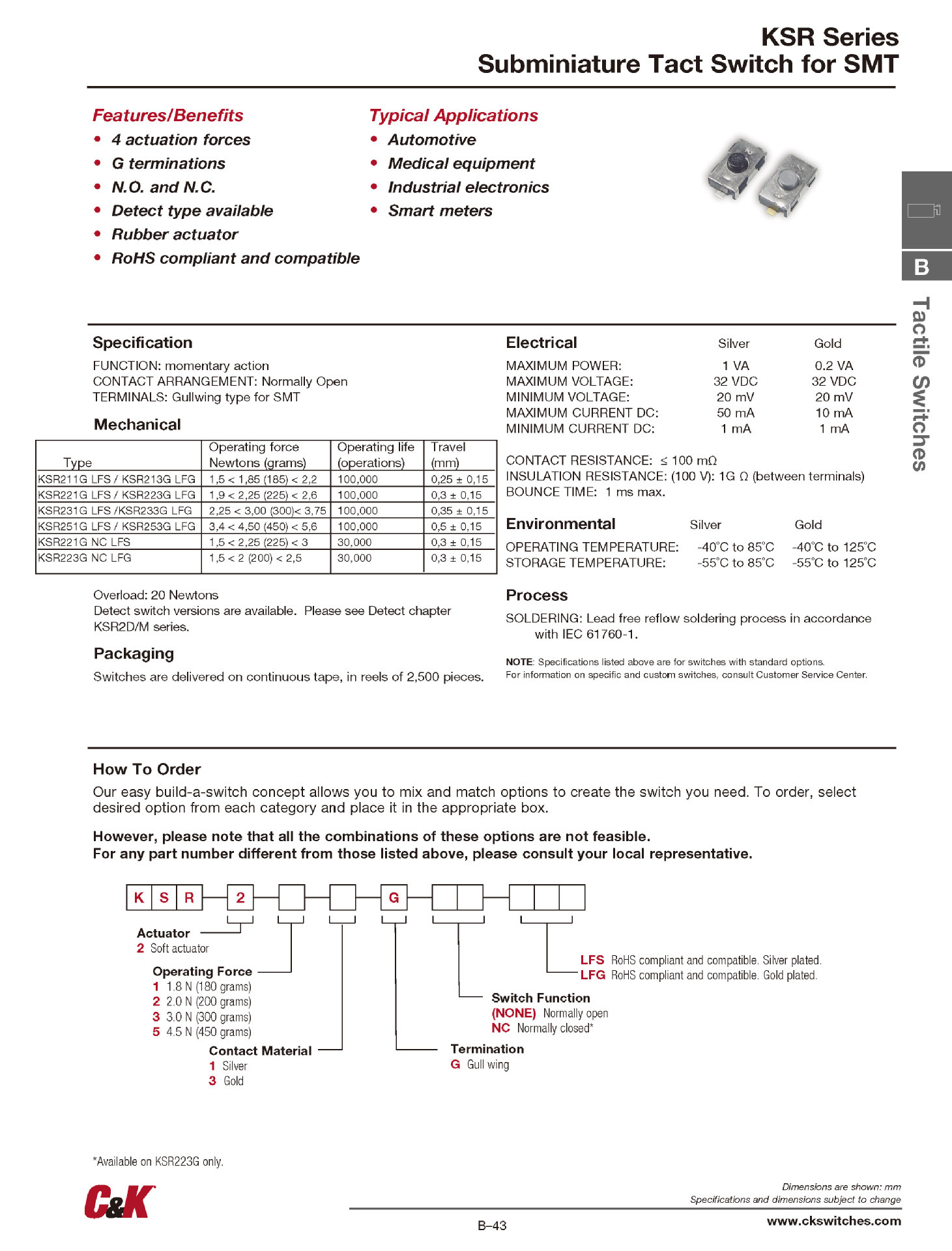 KSR221GLFS 超小型 SMT タクトスイッチ CK マイクロスイッチ車のスイッチ