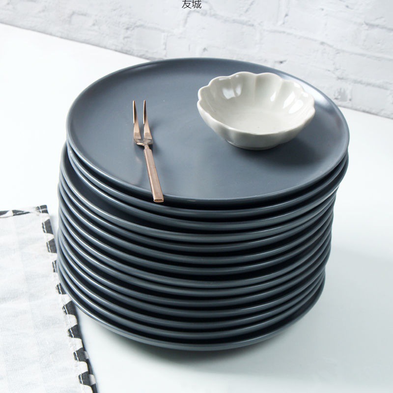 マイクロマットセラミック洋食プレートスペースグレー家庭用ラウンド食器ケーキプレートサラダステーキパスタプレート卸売